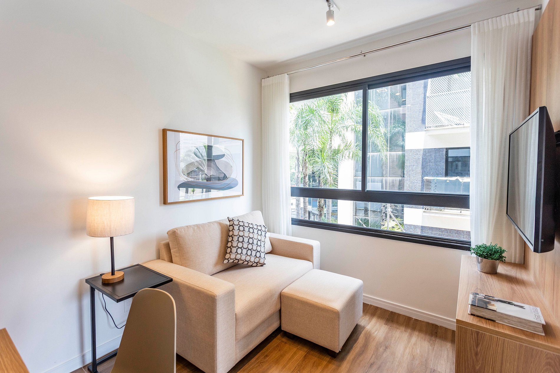 The living room has a Smart TV, great internet, large window and is integrated with the kitchen, very well equipped and laundry.