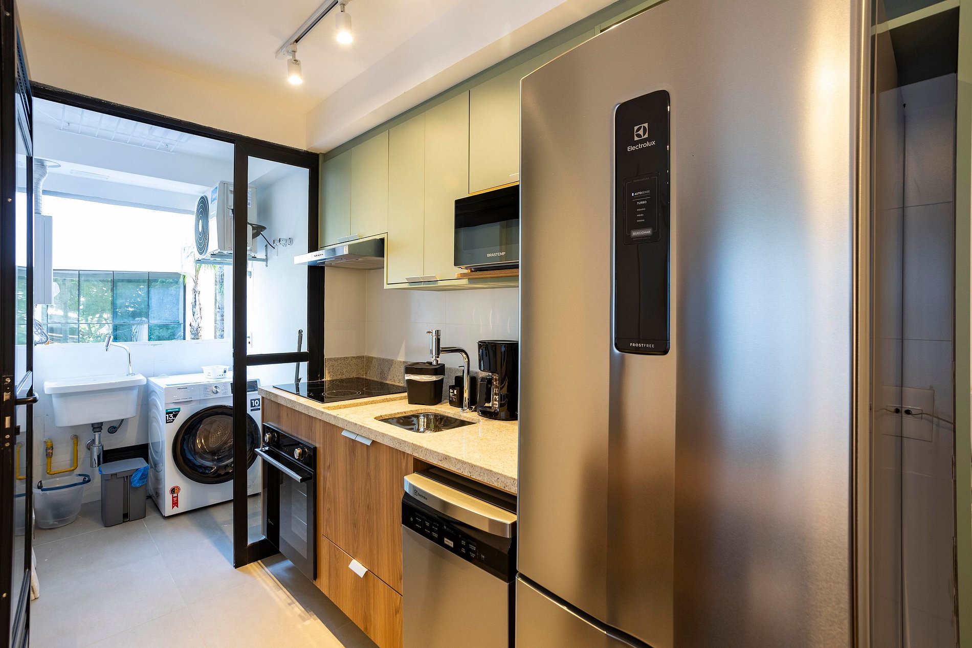 The living room has a Smart TV, great internet, large window and is integrated with the kitchen, very well equipped and laundry.