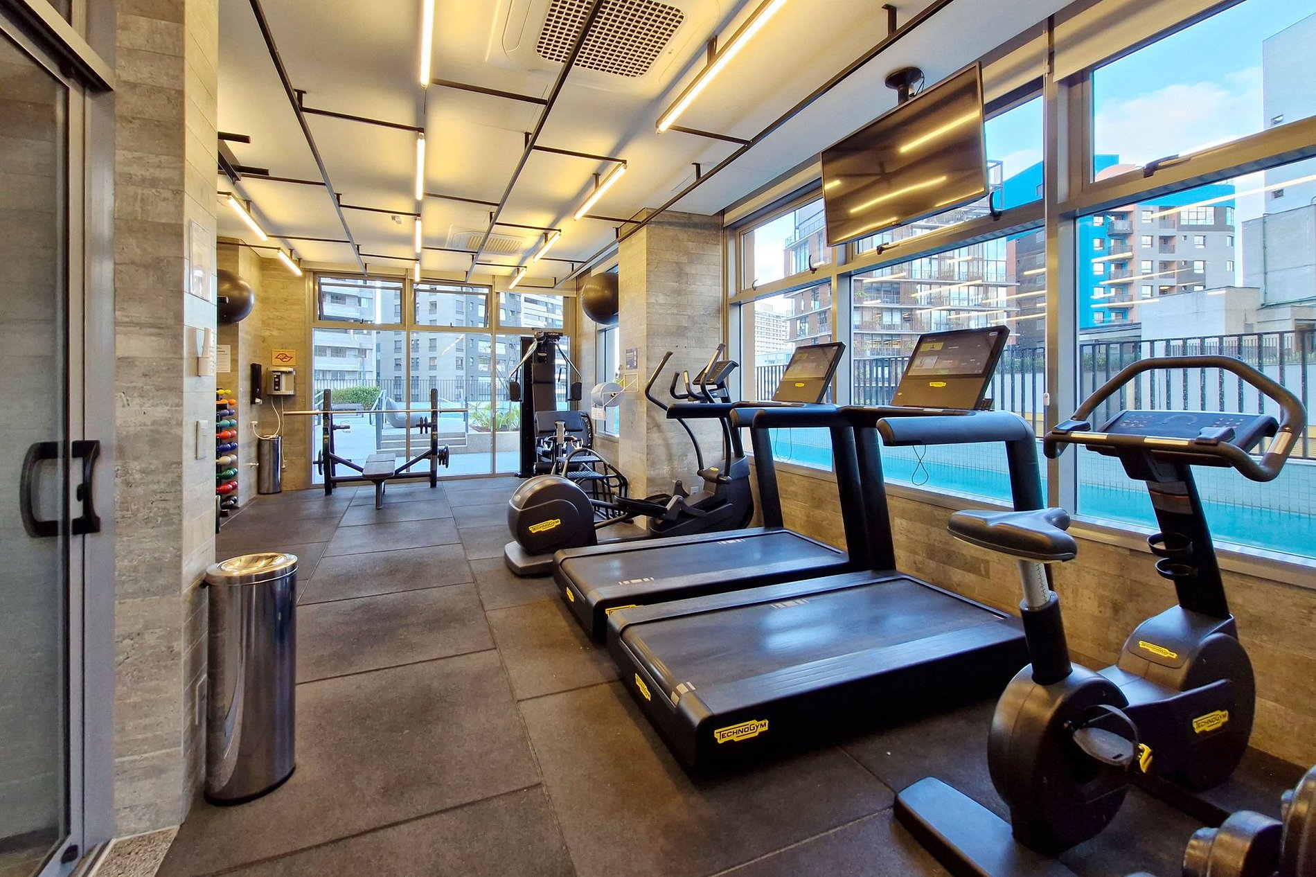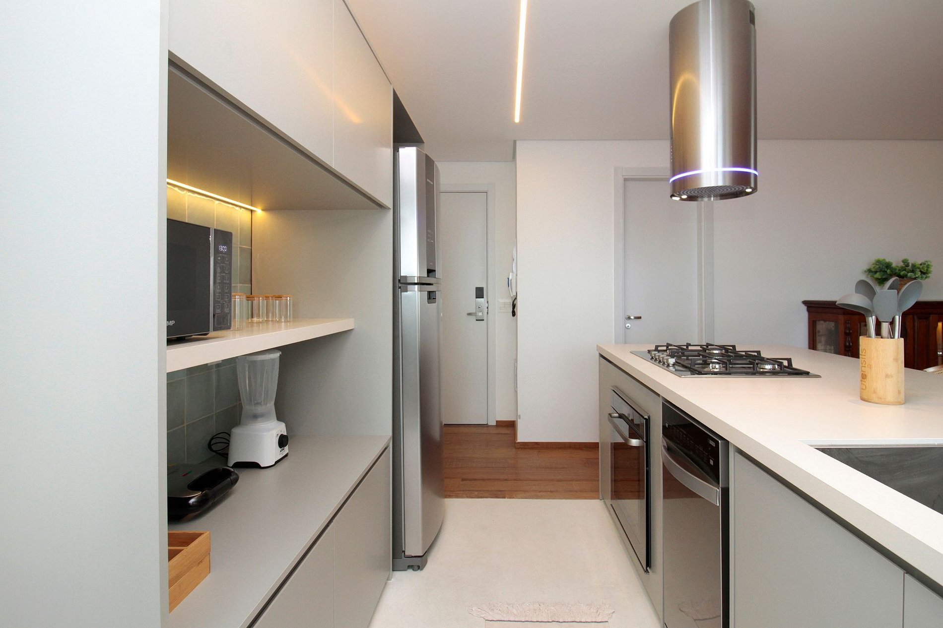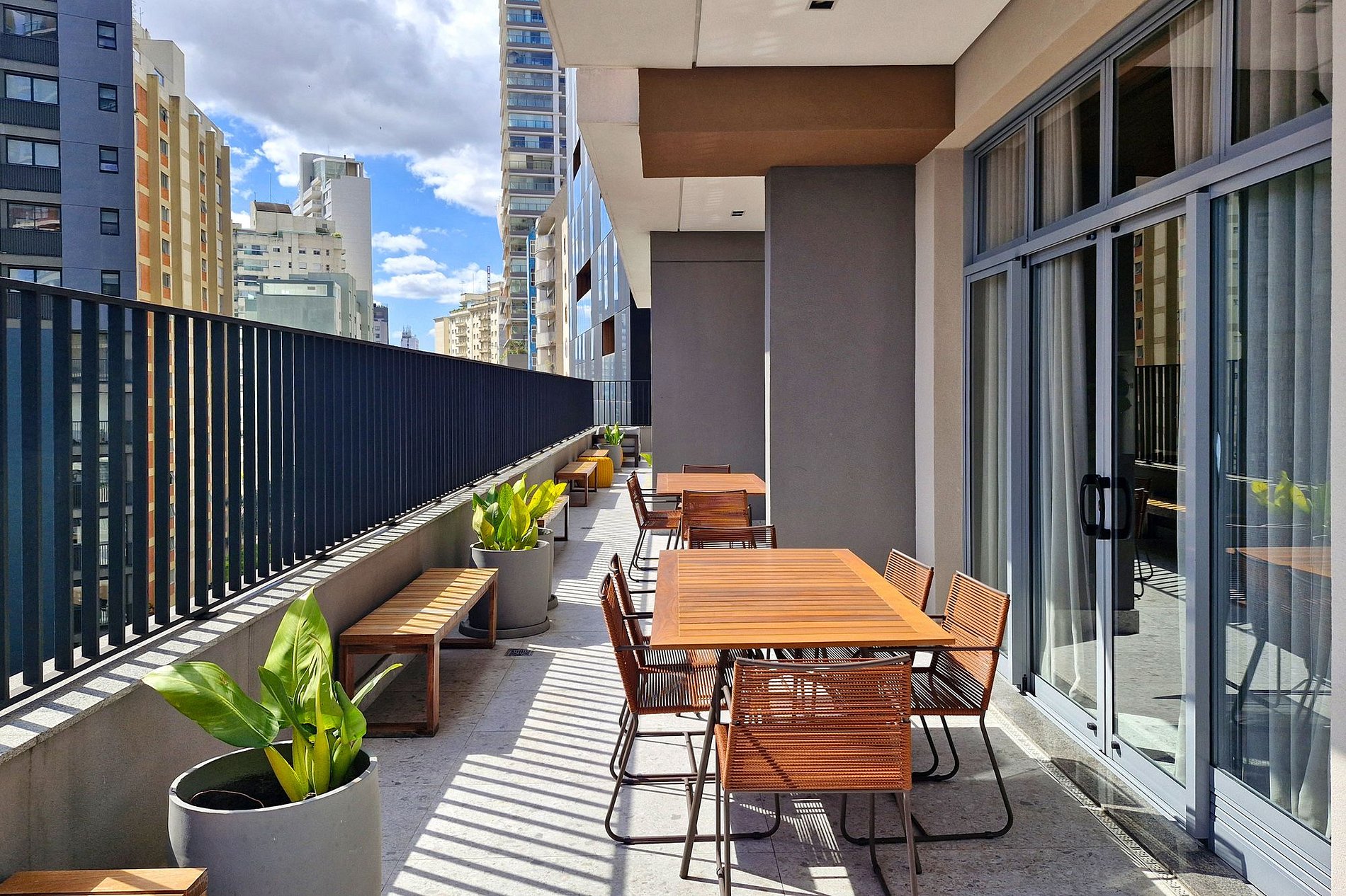 Unique apartment in Vila Madalena. Features a spacious master suite with closet, modern bathroom, and work desk. Includes a second support room, also with a desk.