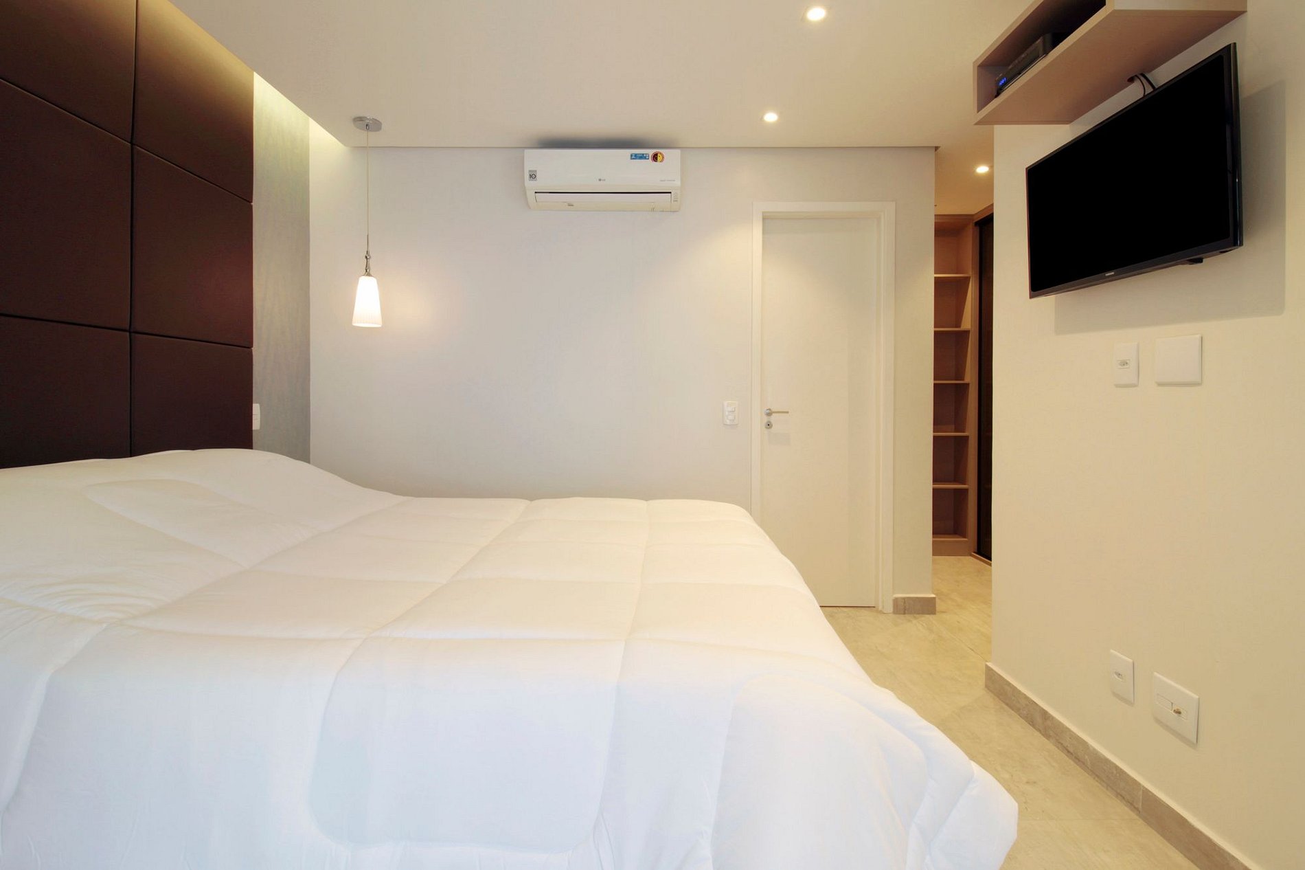 Beautiful, modern apartment in a unique building and super well located! With a delightful closed balcony with incredible views from the 11th floor, this apartment is functional and well decorated, offering your stay: TV room with Smart and cable TV, internet, well-equipped kitchen, toilet. The suite has blackout, Smart TV, excellent linen, delicious shower, as well as 1 parking space and basic daily housekeeping service, during the week, at no additional cost.