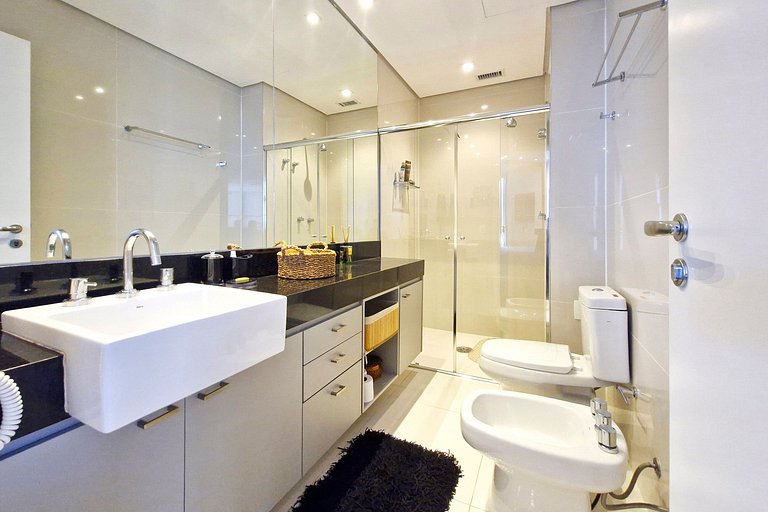 Seja bem-vindo(a)!! Gostaríamos de salientar algumas regras que achamos importante para que não tenhamos problema durante essa experiência. São elas: - Deverá ser enviado o quanto antes cópias (ou fotos) do documento de TODOS que ficarão hospedados – requisito para que o check-in seja feito. A estadia é permitida apenas àqueles que constam na reserva; ** É de extrema importância a devolução do cartão/chave ao final da estadia, no momento do check-out. A não devolução acarretará em cobrança de taxa para um novo. - Respeite os horários de check-in e check-out! - Visitas, atividades comerciais e sessões fotográficas são terminantemente proibidas; - Caso precise de banheirinha de bebê ou berço, favor avisar previamente a sua entrada para que possamos providenciar; - É proibido: fumar, animais de estimação e festas dentro do apartamento; - Para estadias de curto prazo, disponibilizamos conjunto de roupa de cama e banho proporcional ao número de pessoas que irão se hospedar; - Cuide do enxoval e utensílios da casa! Em caso de quebra, perda ou manchas permanentes, será solicitado reembolso do item; - Cuidado especial com o uso de álcool em gel em pisos de madeira e correlatos, será solicitado o pgto integral do conserto em caso de manchas irreversíveis; - Os materiais básicos, como: papel higiênico, água, café e açúcar são deixados para atende-los em um primeiro momento. É de responsabilidade do hóspede repor de acordo com sua necessidade; - A utilização da máscara de proteção facial individual é obrigatória em todas as áreas comuns do prédio, sujeito à multa; - Não nos responsabilizamos por encomendas e correspondências enviadas ou deixadas no local fora do seu período de estadia. Se tiver algum problema ou dúvida, sinta-se à vontade para nos comunicar! Iremos resolver da melhor maneira possível. Aproveite sua estadia!