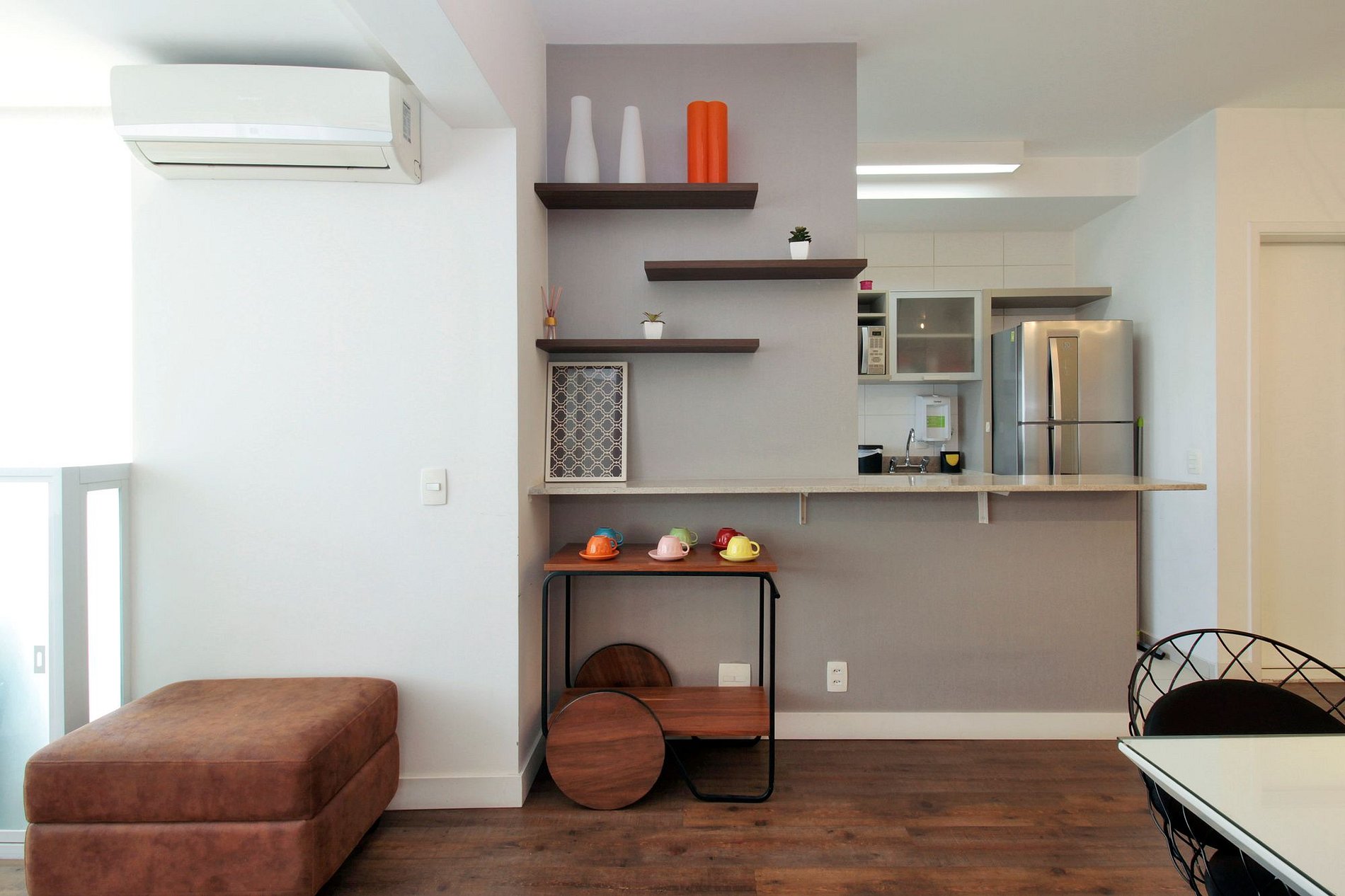 With 60 m² of integrated area and charming details, this apartment has the comfort you need during your stay in SP. Equipped American kitchen, comfortable bed and sofa bed, quality layette, toilet, air conditioning, Nespresso coffee machine, covered balcony, 1 parking space and a wonderful view! To top it off, we offer a daily maid service at no additional cost.