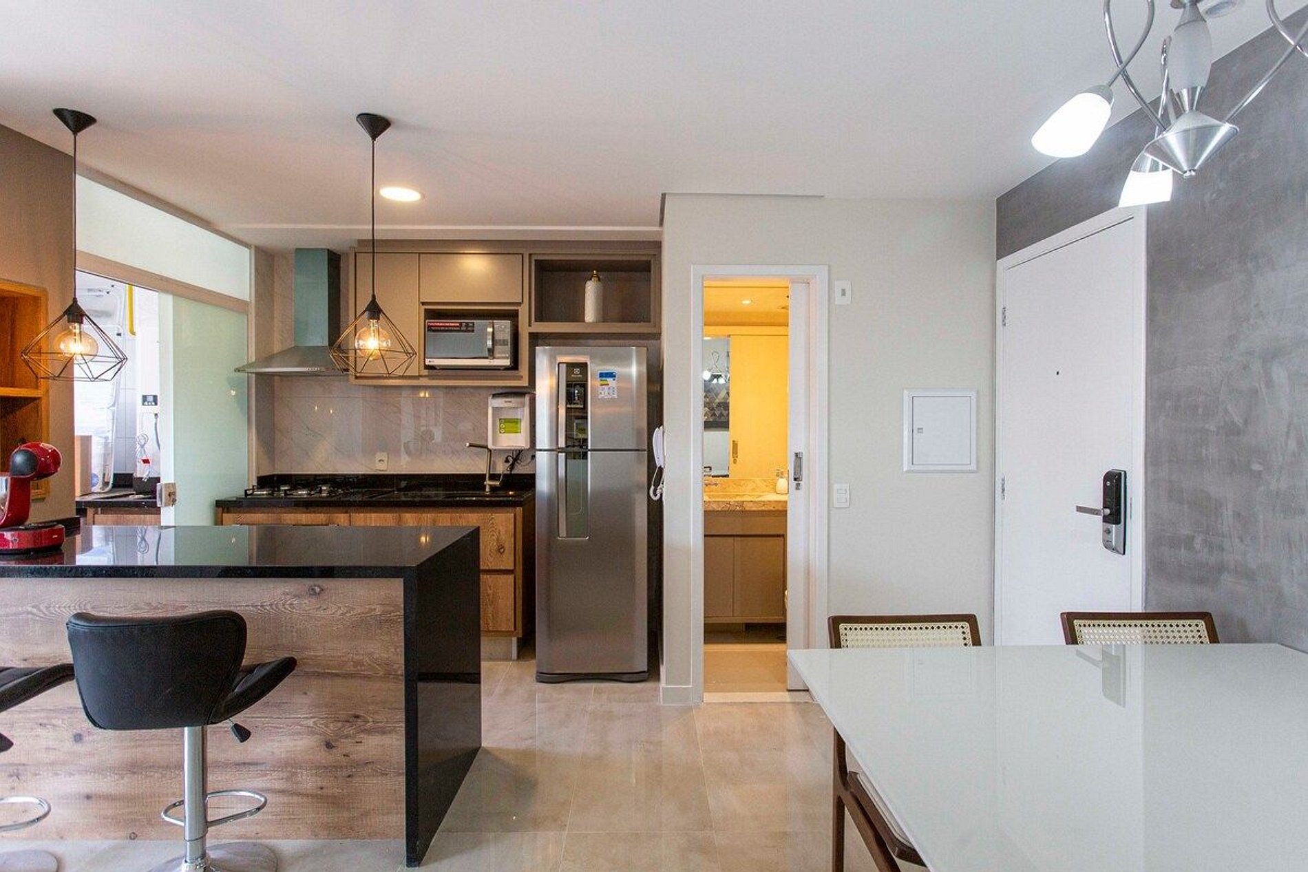 Exclusive! Apartment of 60 m², nicely decorated and complete for a special stay! It has Wi-Fi, Smart TV and cable TV, air conditioning, closed balcony with incredible views, equipped American kitchen, toilet, washing machine, complete wardrobe and daily maid service at no additional cost.
