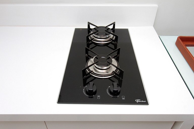 The living room is integrated with the kitchen and bedroom, with sofa bed, internet, well-equipped kitchen, home office table with super comfortable chair, washing machine and dryer inside the apartment!