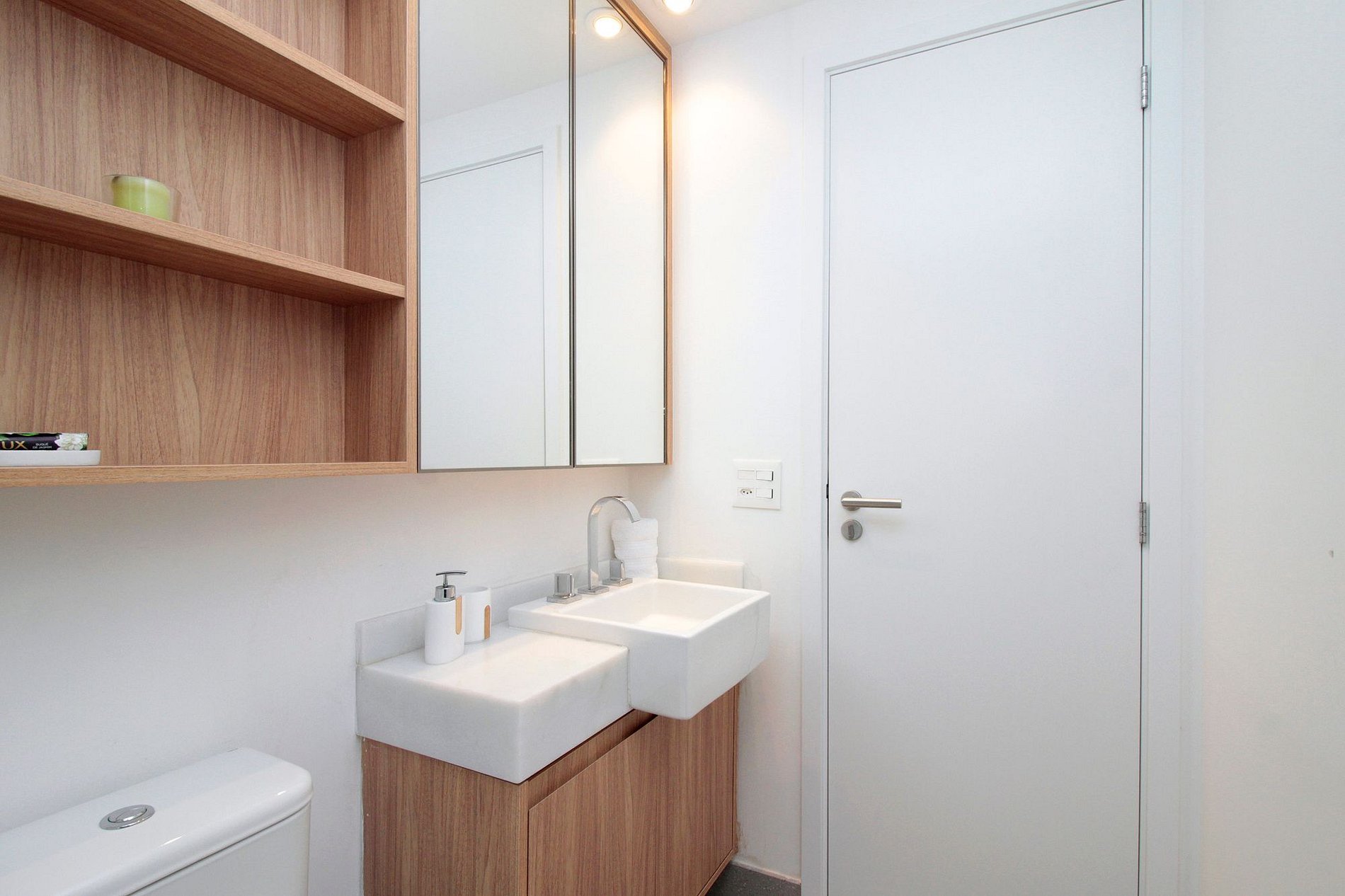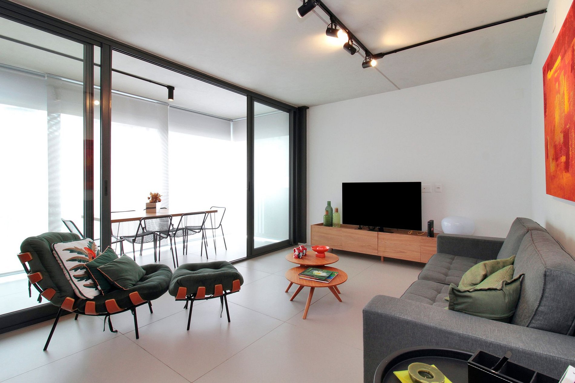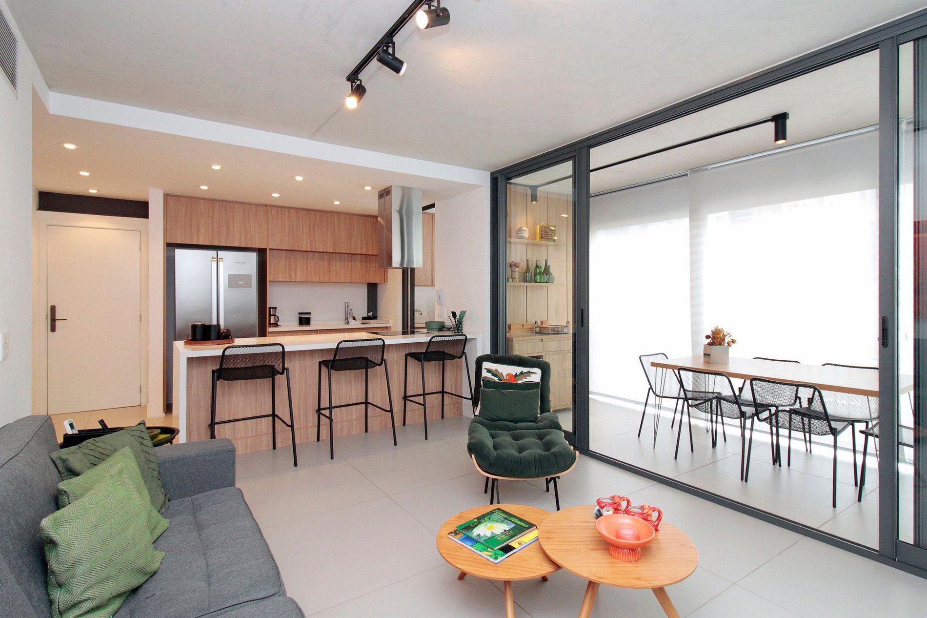 This apartment stands out for its ambiance and practicality. Air conditioning in all rooms, bedrooms with box bed, blackout windows and bed and bath linen available. Living room integrated with equipped kitchen, large balcony, 55" TV with streaming services (Netflix, Amazon Prime, Disney+ and HBO Max), Wi-Fi, microwave, oven, dishwasher, washer and dryer, and dual-zone wine cellar. Newly opened building, with 1 parking space, gym and gourmet space.