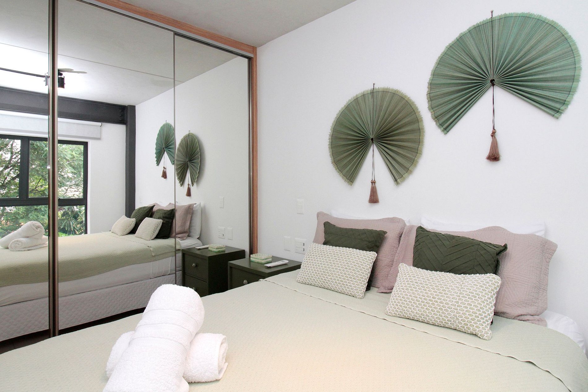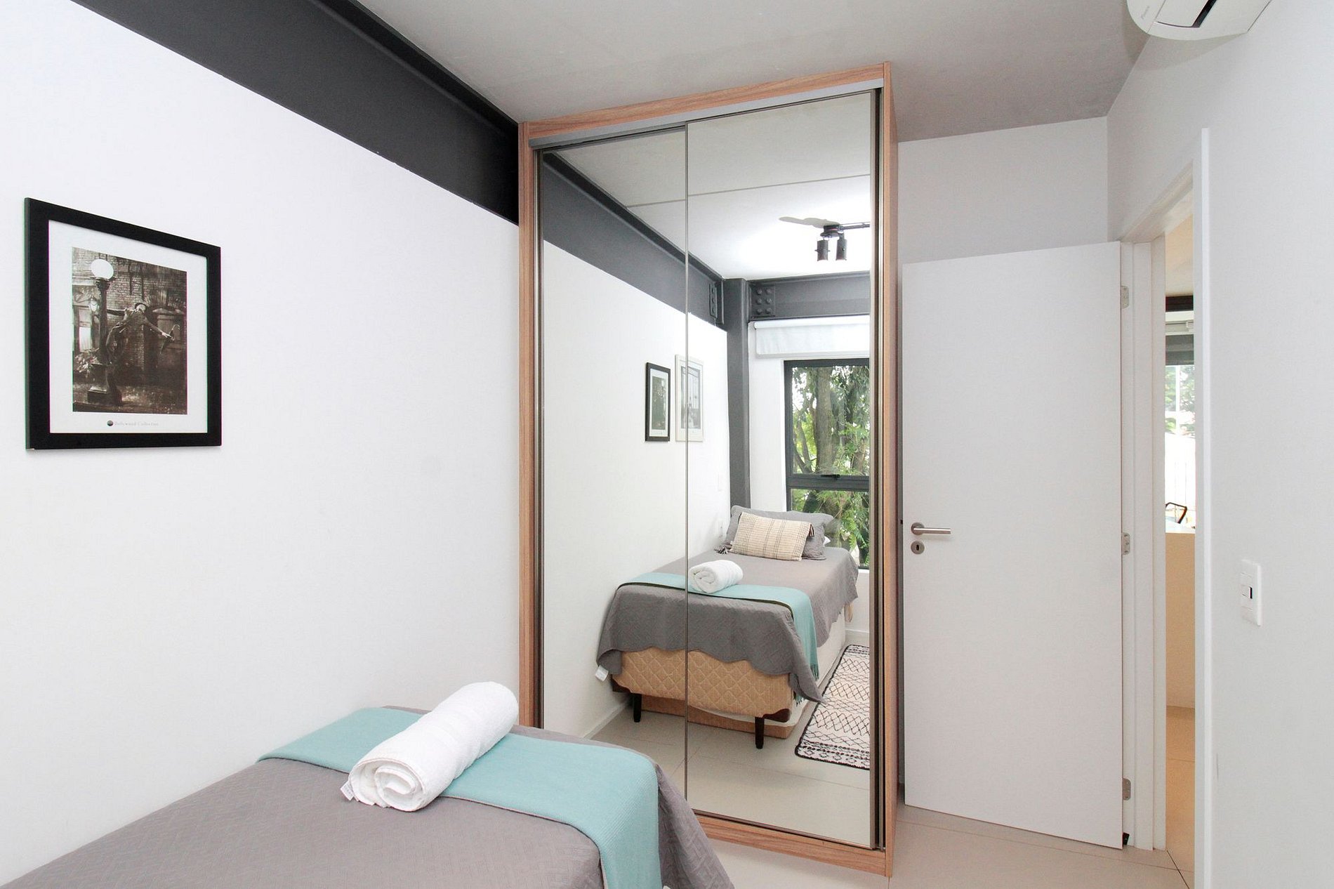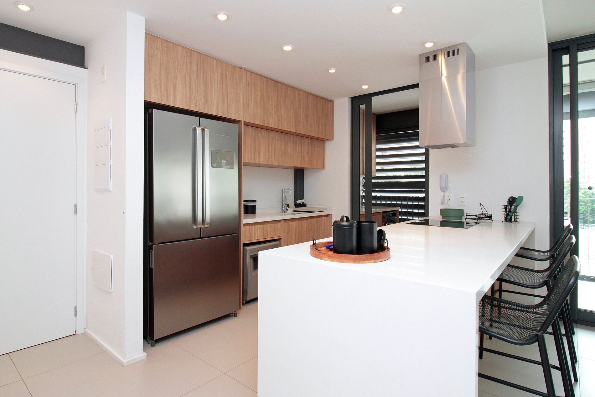 This apartment stands out for its ambiance and practicality. Air conditioning in all rooms, bedrooms with box bed, blackout windows and bed and bath linen available. Living room integrated with equipped kitchen, large balcony, 55" TV with streaming services (Netflix, Amazon Prime, Disney+ and HBO Max), Wi-Fi, microwave, oven, dishwasher, washer and dryer, and dual-zone wine cellar. Newly opened building, with 1 parking space, gym and gourmet space.
