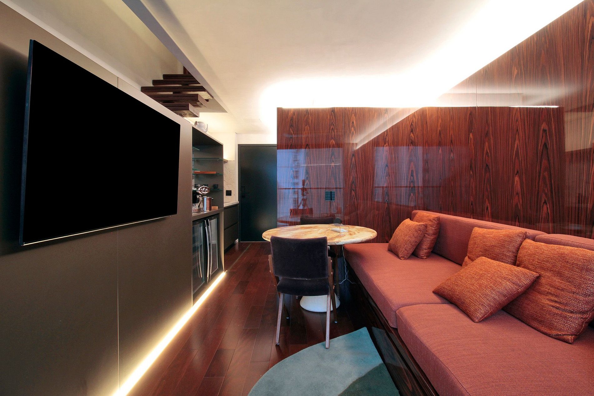 Upon entry, enjoy a stylish living room with a 60" Smart TV, high-speed internet, luxurious marble bathroom, and a fully equipped kitchen featuring a cooktop, two wine fridges, and a Nespresso machine.