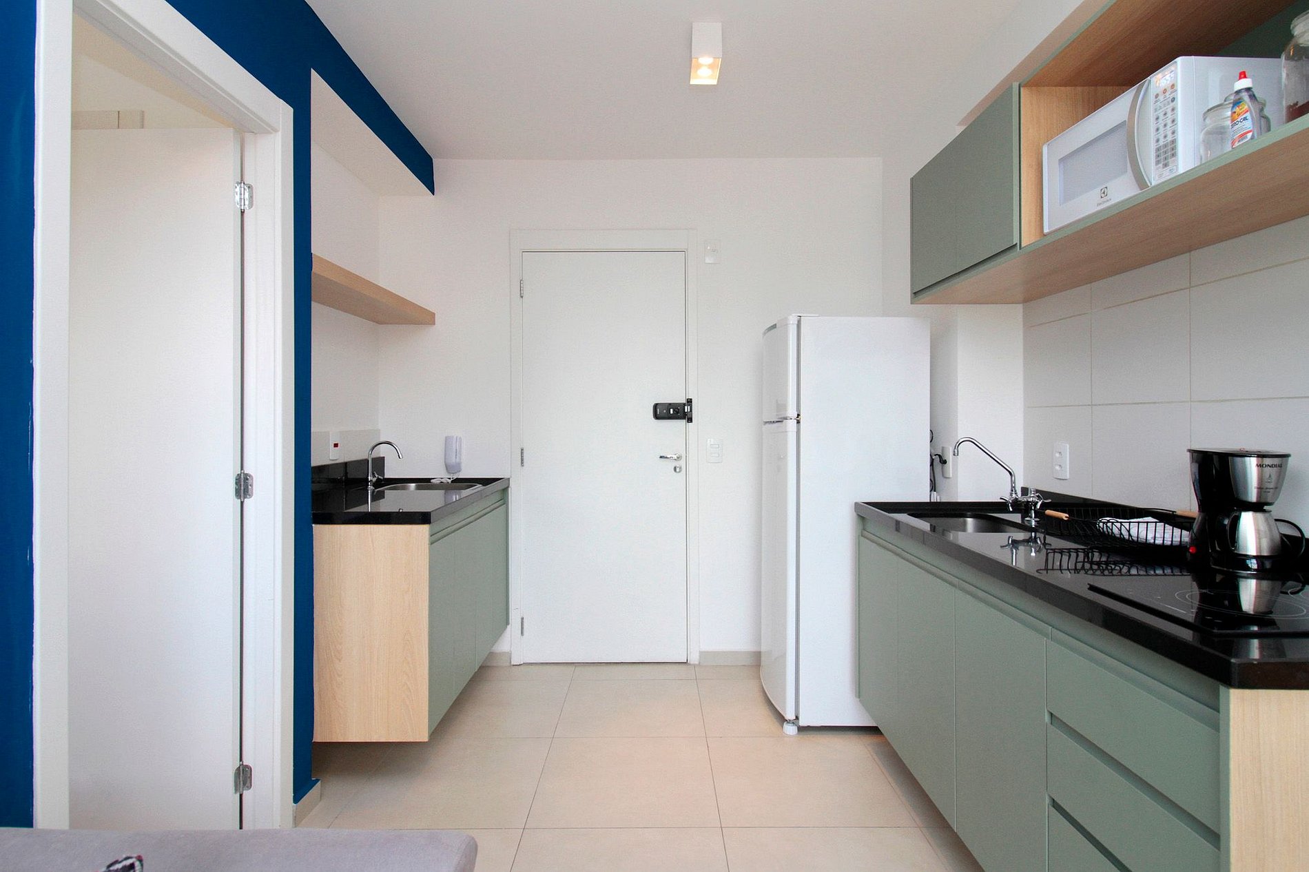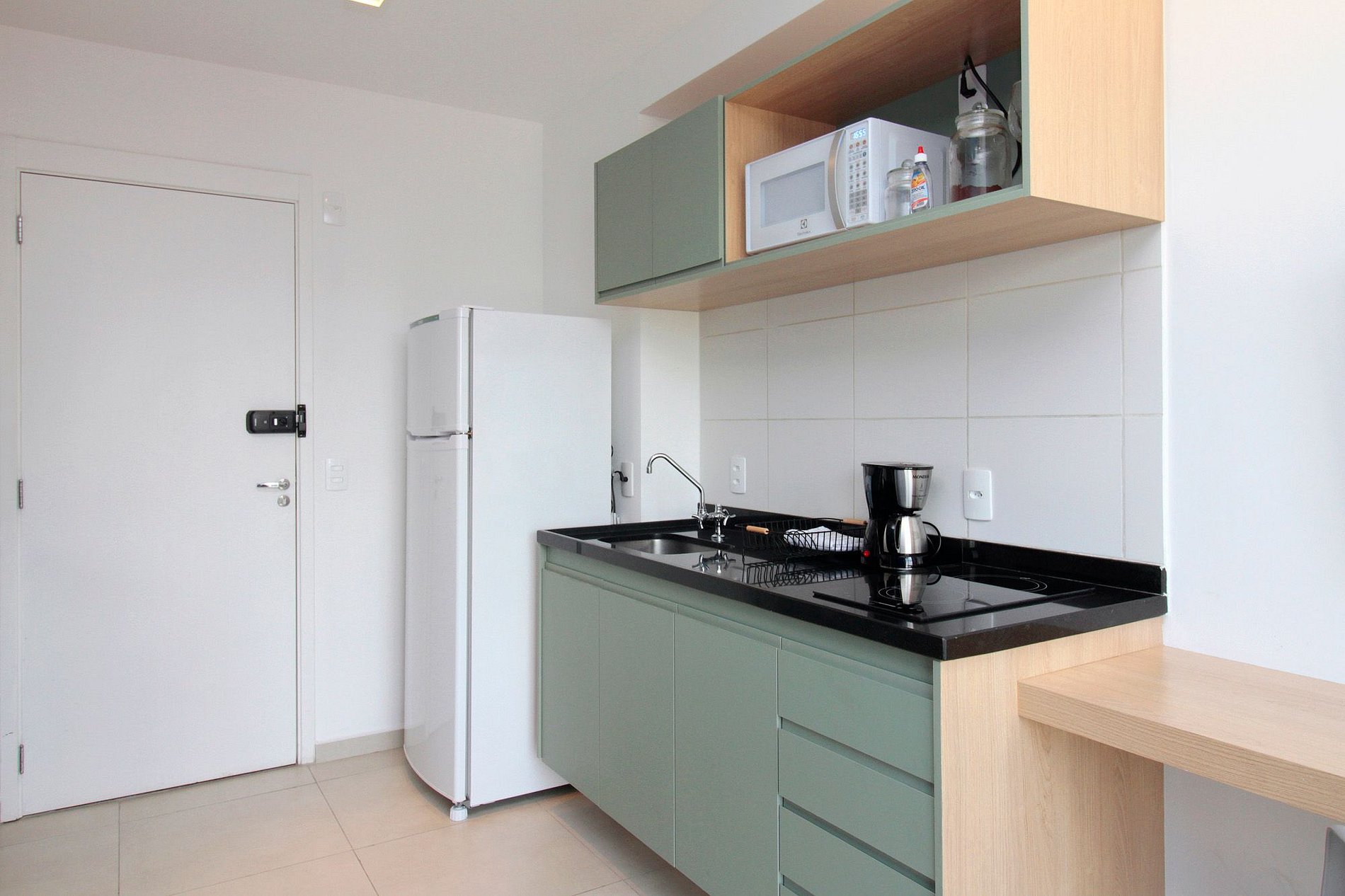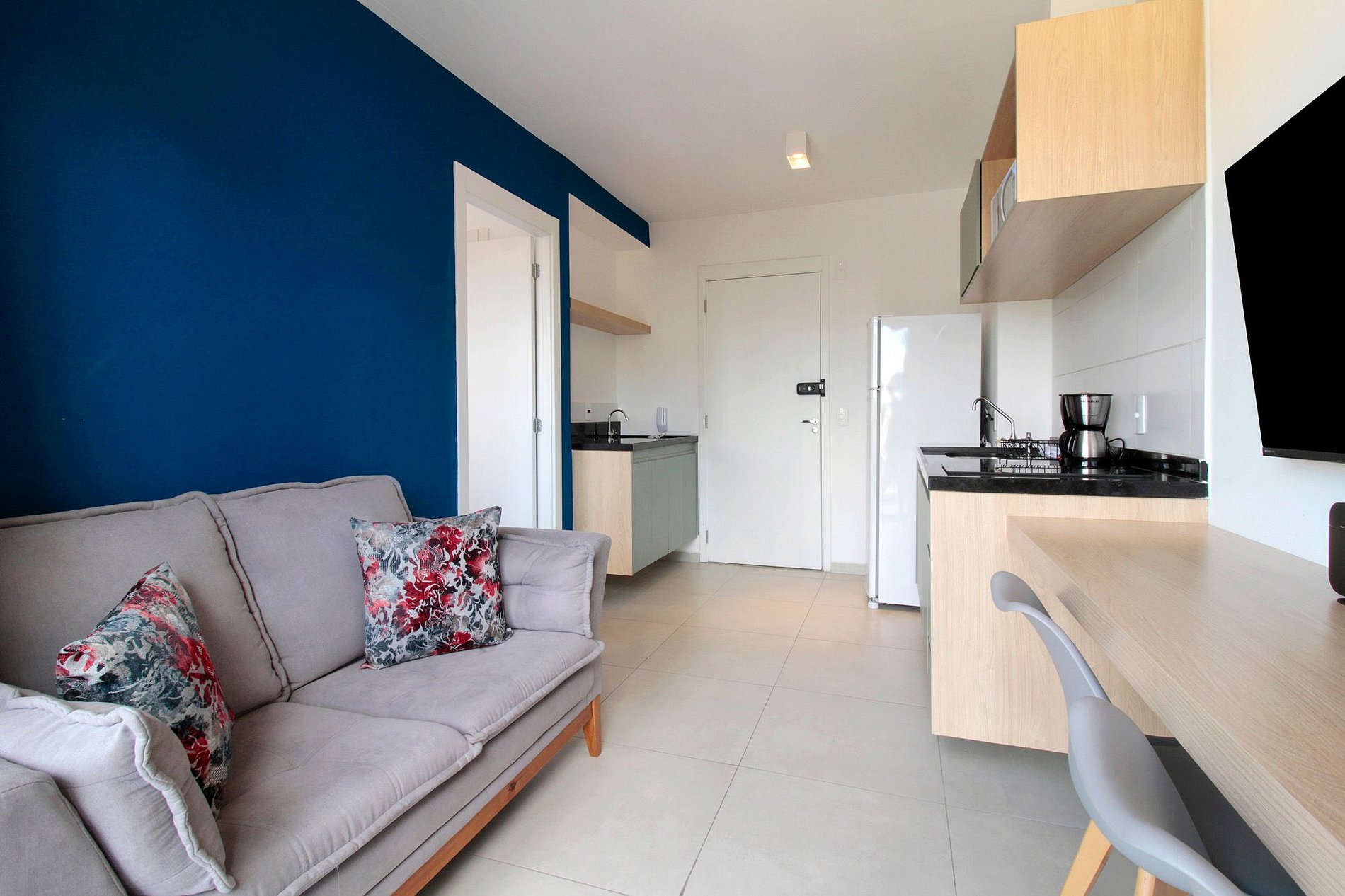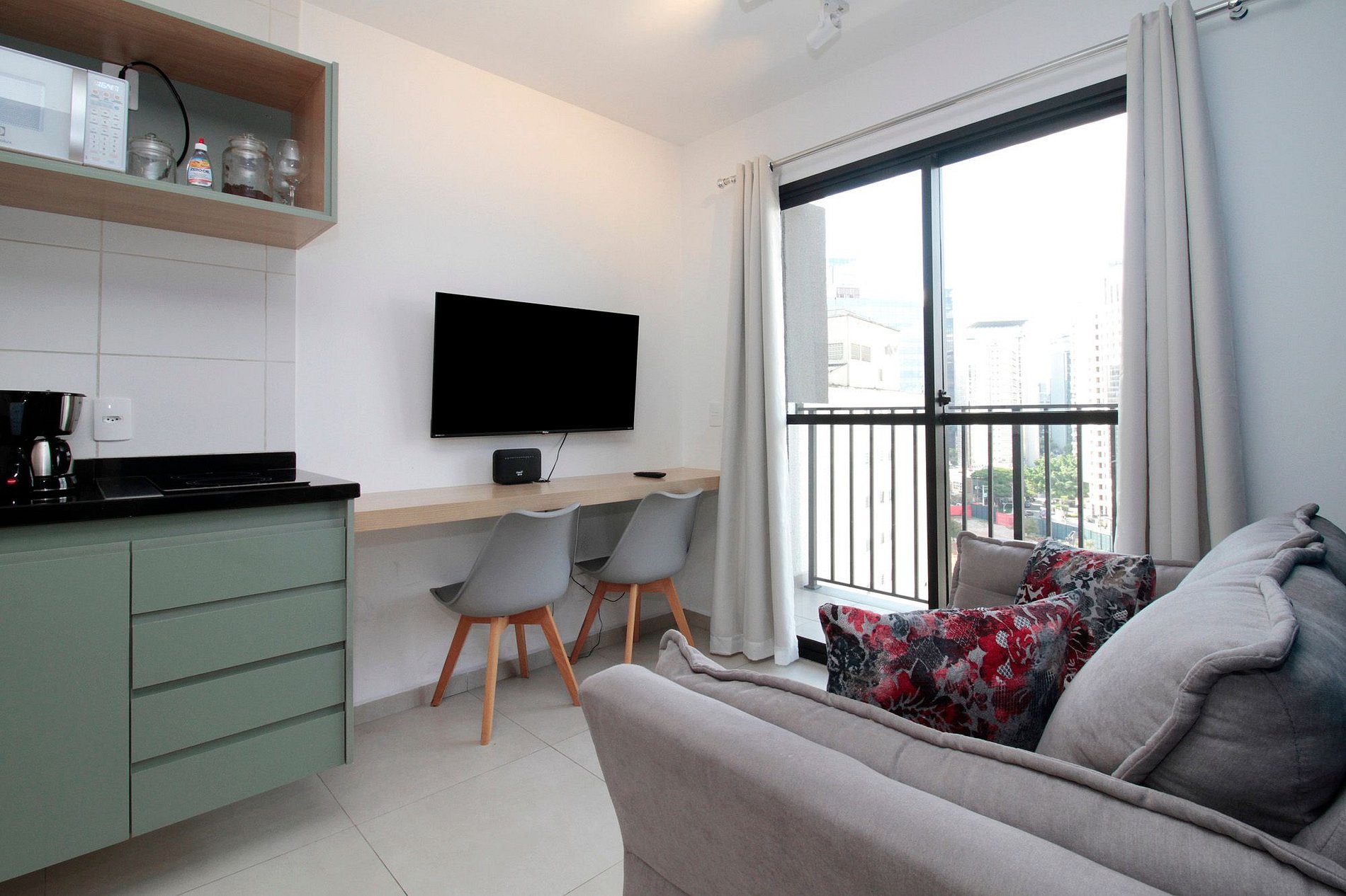 The room has air conditioning, blackout and excellent linen. The living room, integrated with the kitchen, also offers comfort with Smart TV, full kitchen, space for meals and home office and a small balcony with a beautiful view.