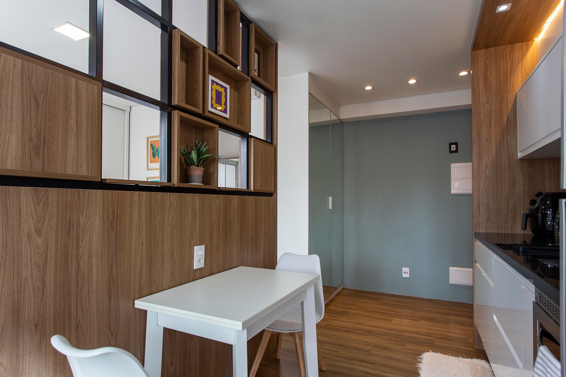 Beautiful apartment organized with the best use of space. Equipped kitchen, delicious shower, and stylish closed balcony to have a glass of wine or watch a movie. Everything to make you feel at home.