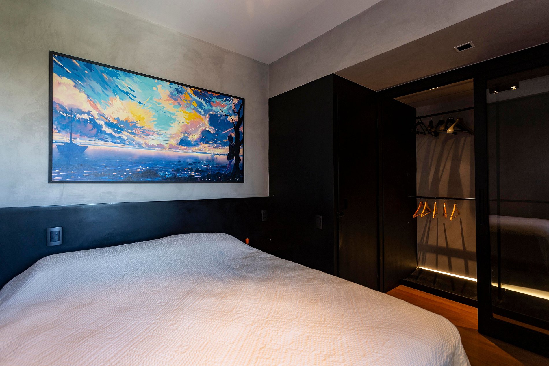 Modern and exclusive apartment, ready to welcome you! Located on the 29th floor, it has: air conditioning, TV, Wi-Fi, equipped kitchen, airy and bright living room, toilet, a suite, available layette and closet. The building has a complete common area, which is a show apart!