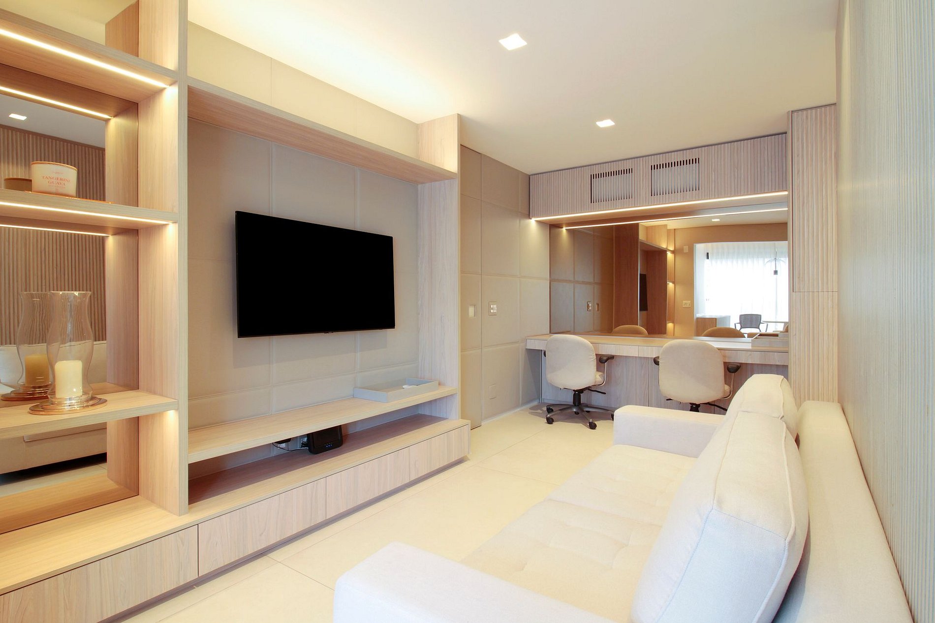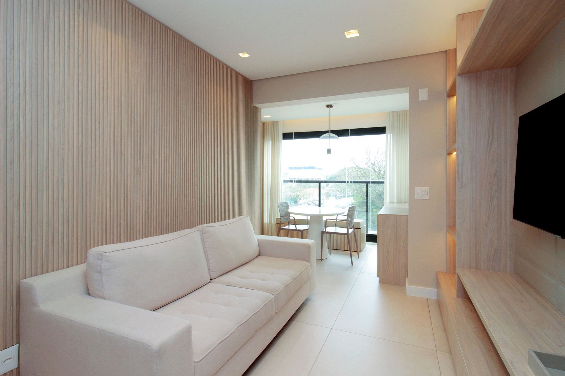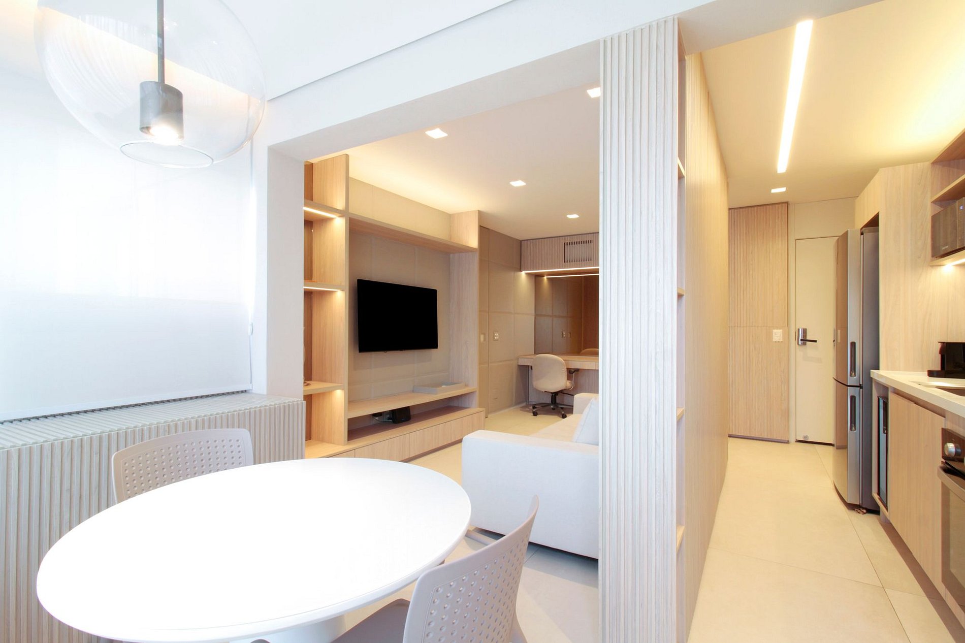 Amplio y luminoso salón con Smart TV, aire acondicionado y conexión a internet de alta velocidad, integrado al balcón y con un espacio ideal para trabajar desde casa. La cocina está completamente equipada y dispone de lavadero con lavadora y secadora.