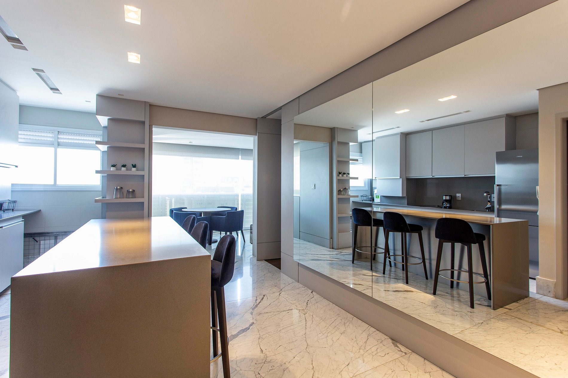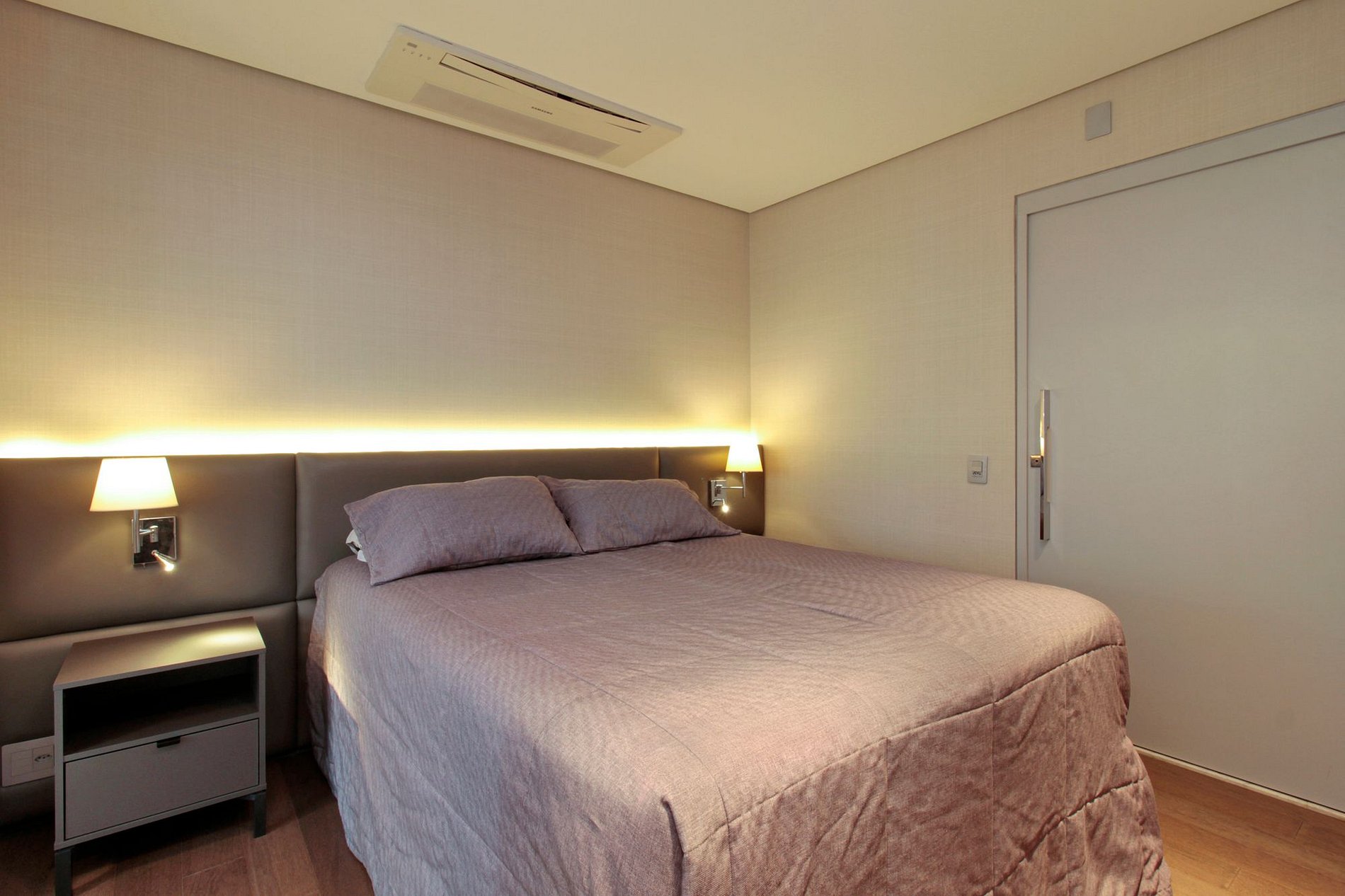 Este apartamento de 60 m² brinda comodidad y estilo para su estadía en SP. Dispone de cocina americana, cama confortable, sofá cama, ropa de cama, baño, aire acondicionado, cafetera, televisores en sala y dormitorio, balcón cubierto, una plaza de aparcamiento y vistas increíbles. Incluye servicio de limpieza básico de lunes a viernes sin costo adicional.