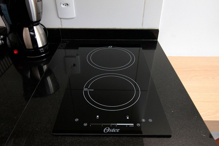La habitación cuenta con aire acondicionado, blackout y excelente ropa blanca. La sala, integrada con la cocina, también ofrece