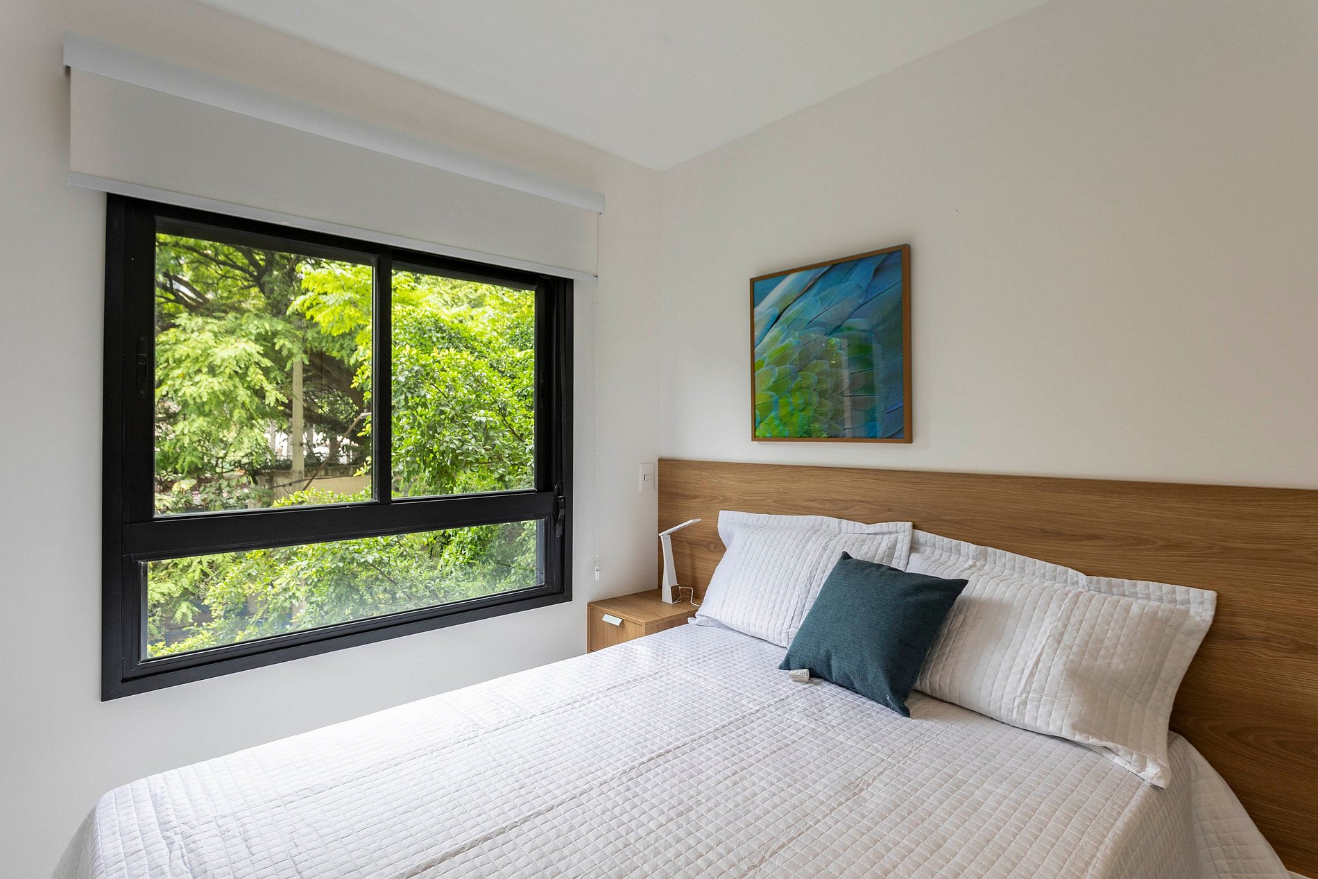 Um dos quartos tem cama de casal, TV Smart e ar condicionado e, o segundo, possui bicama, ventilador no teto e uma escrivaninha para completar seu conforto. Ambos com excelentes enxovais, armário e blackout.