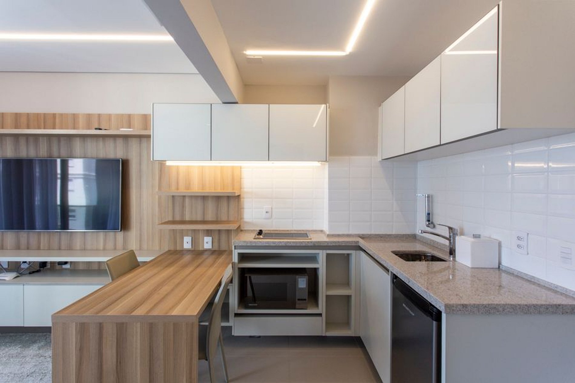 Studio de 36m2, super bem equipado, com decoração clean e muito detalhes!