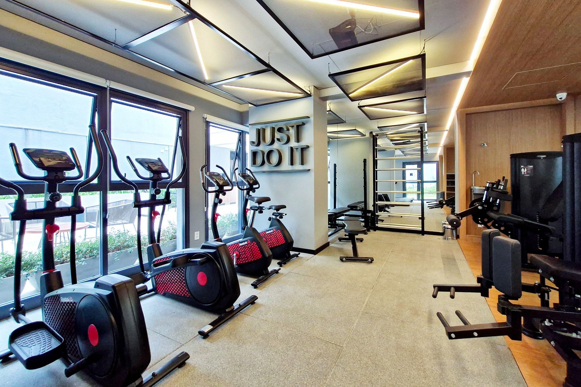 Prédio moderno, com piscina na cobertura, coworking, sala de reunião, academia e sala de pilates. Muito completo.