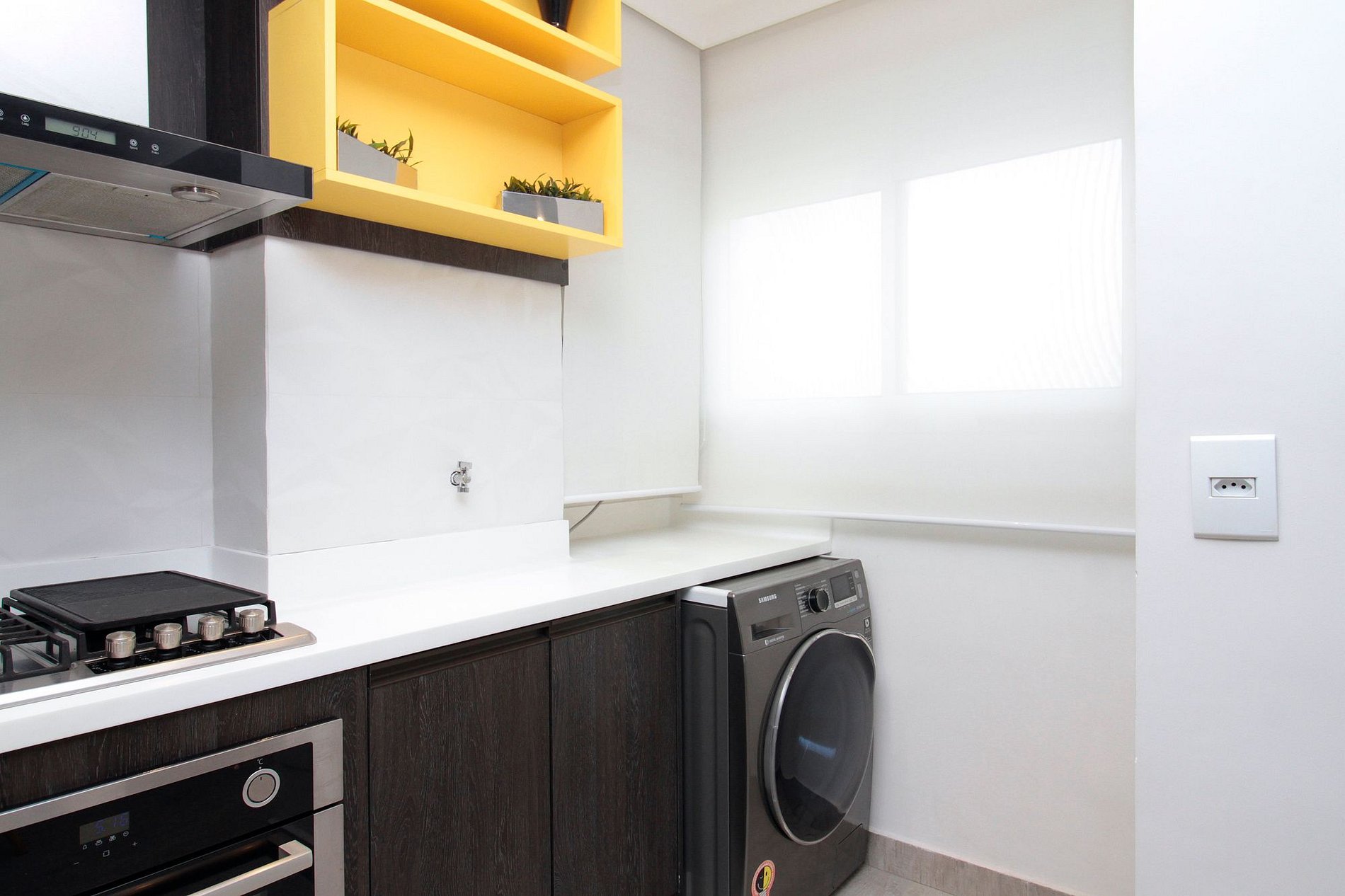 Com uma deliciosa varanda fechada com vista incrível do 11o andar, este apto é funcional e bem decorado, oferecendo a sua estadia: sala de TV com TV Smart e a cabo, internet, cozinha bem equipada, lavabo.