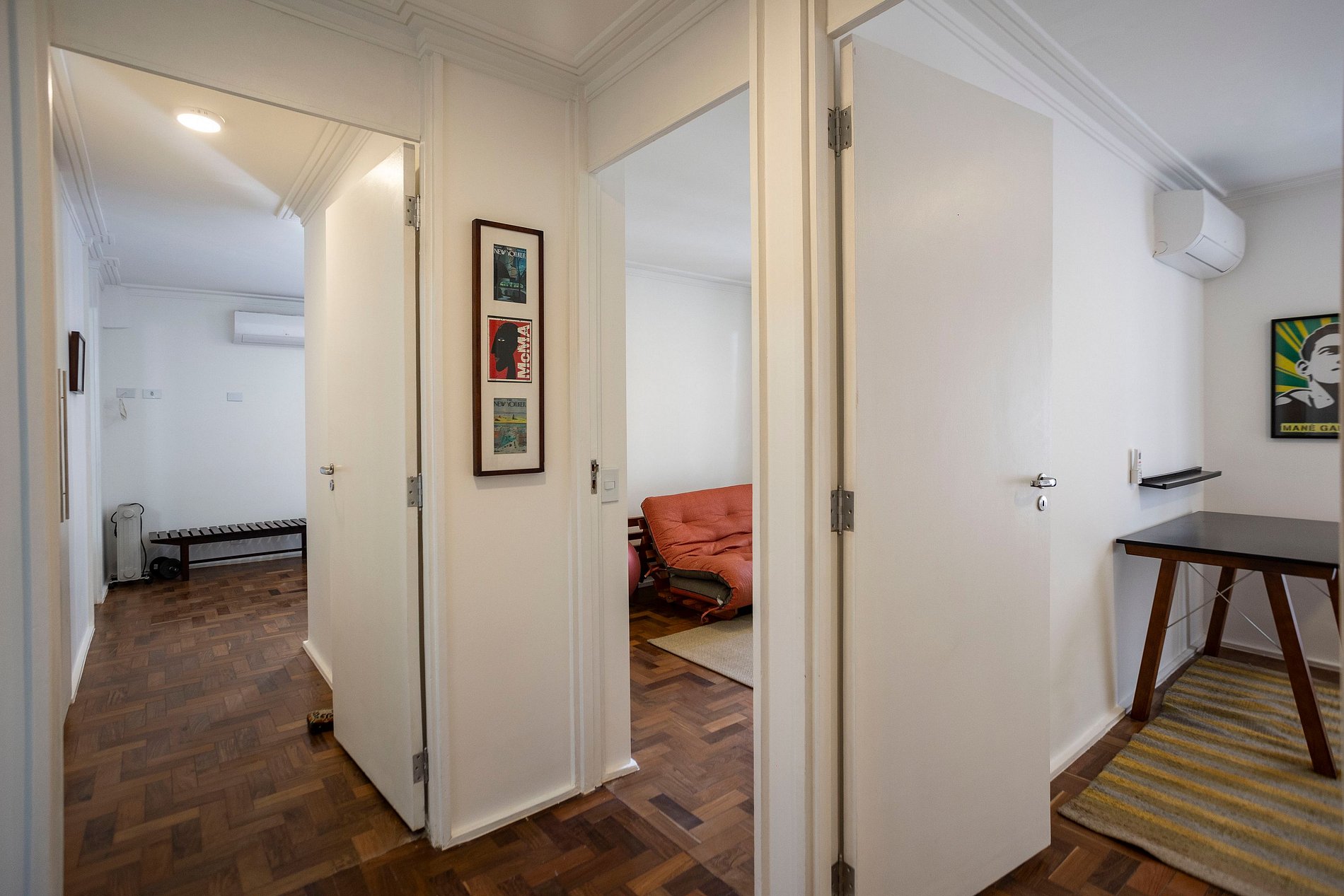 São 3 dormitórios, sendo uma suíte, todos eles com ar condicionado, blackout e excelentes enxovais.