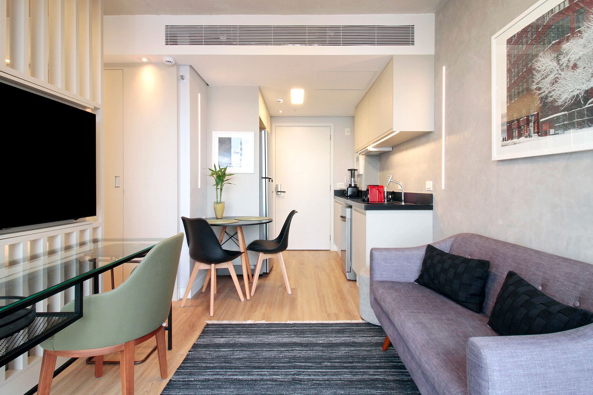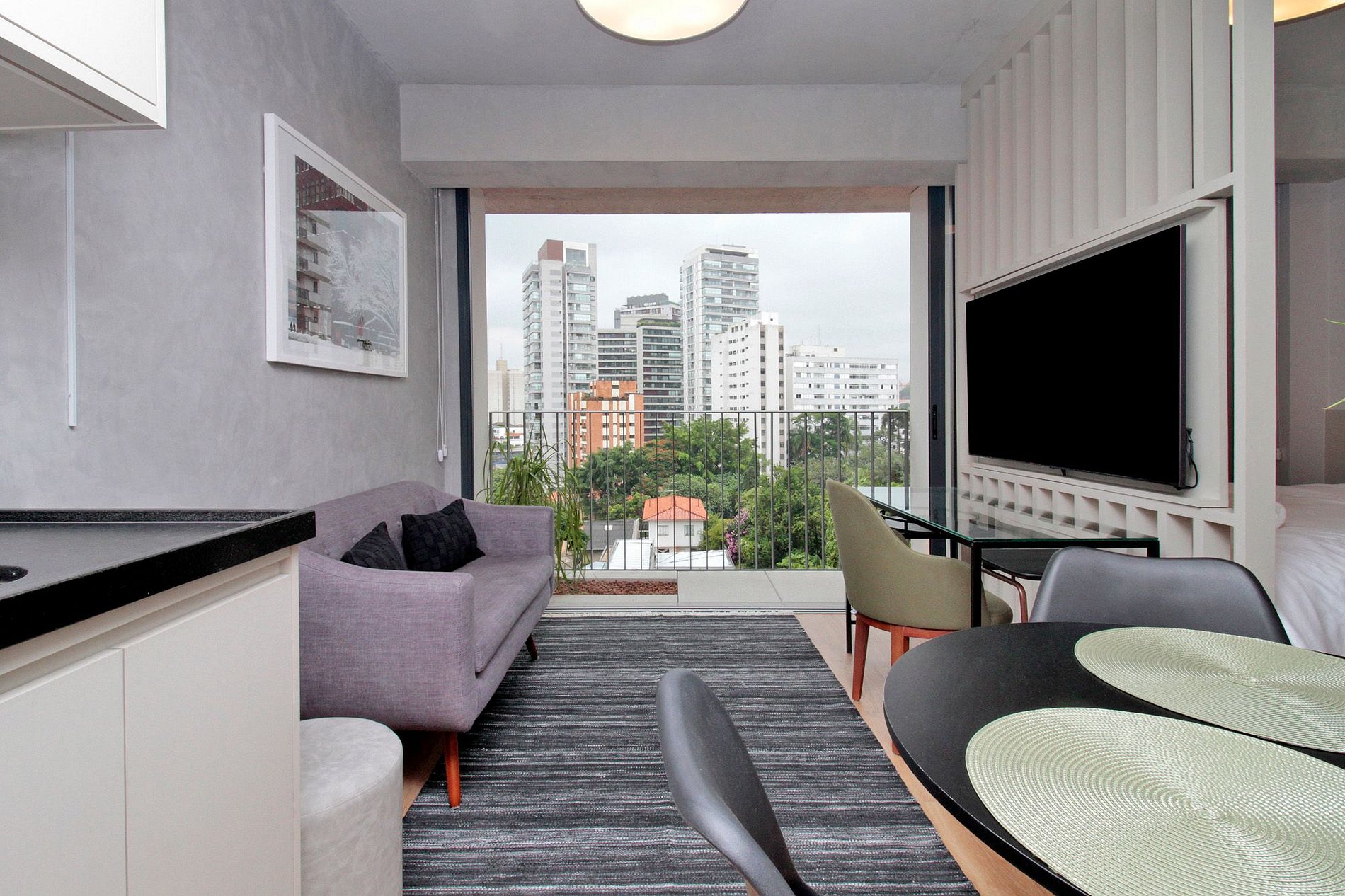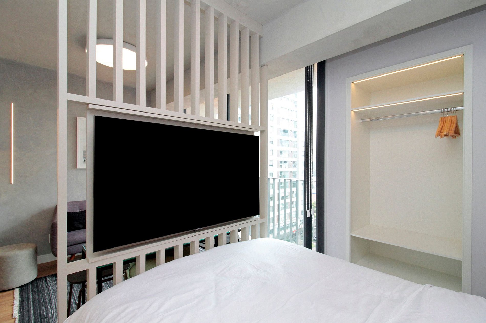 Cortinas blackout, máquina lava e seca, ar-condicionado, cama confortável com enxoval de qualidade, TV Smart giratória, internet rápida e varanda para relaxar e se inspirar em SP. Aproveite a piscina na cobertura para tornar sua estadia ainda mais agradável!