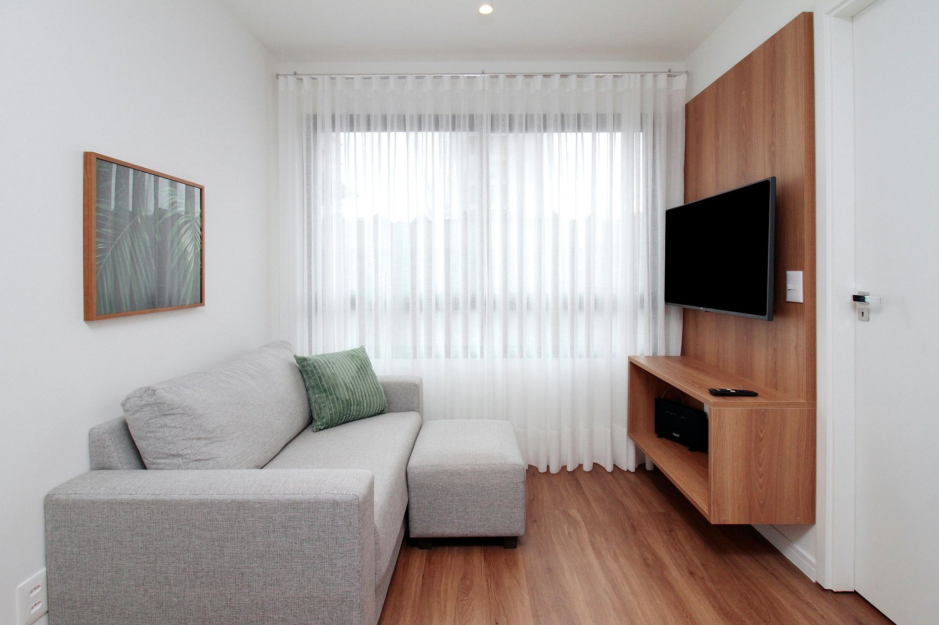 A sala conta com TV Smart, excelente internet, ampla janela e é integrada à cozinha, bem equipada e com maquina lava/seca na área de serviço.