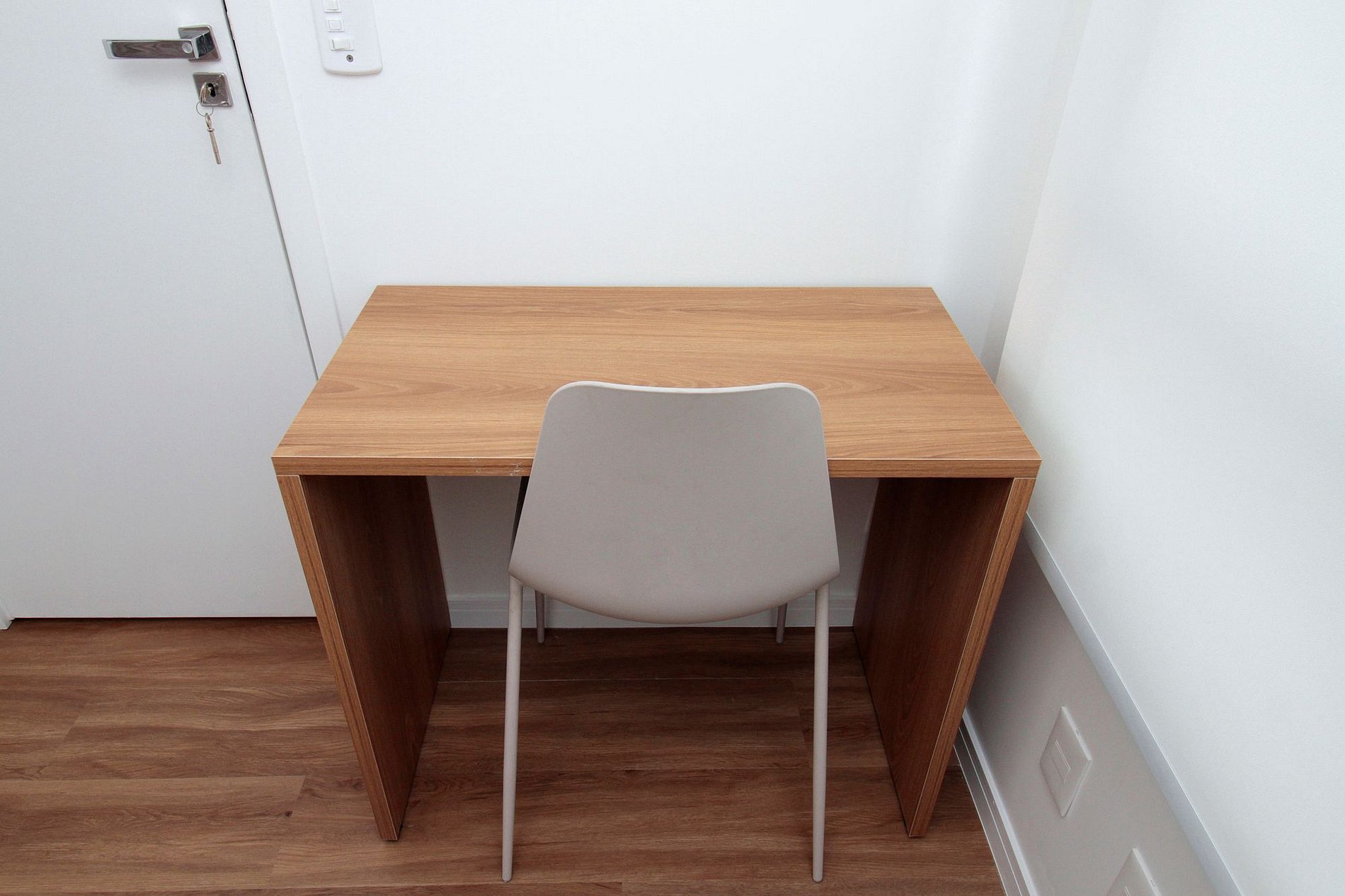 Um dos quartos tem cama de casal, TV Smart e ar-condicionado, e o segundo possui bicama, ventilador de teto e uma escrivaninha para completar seu conforto. Ambos com excelentes enxovais, armário e cortinas blackout.