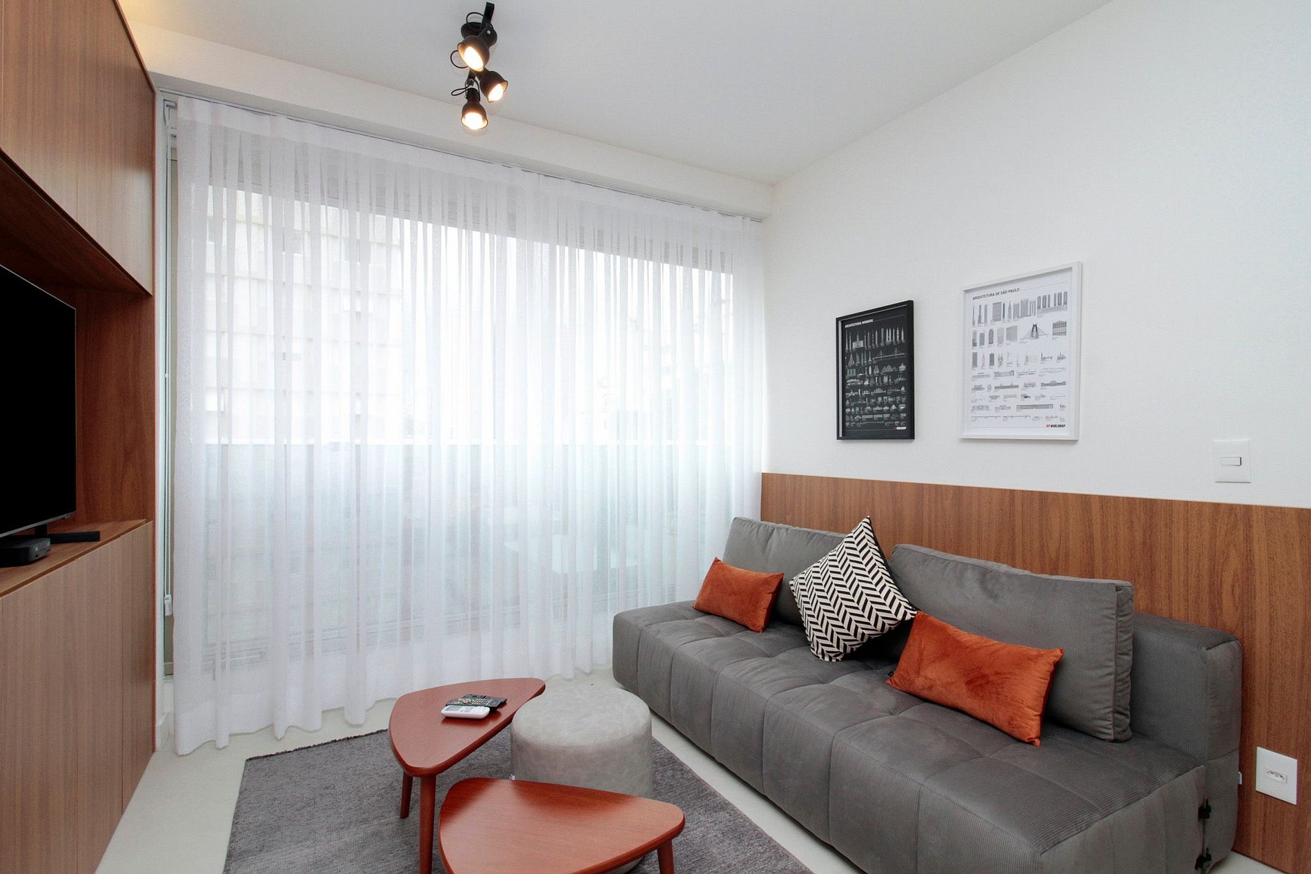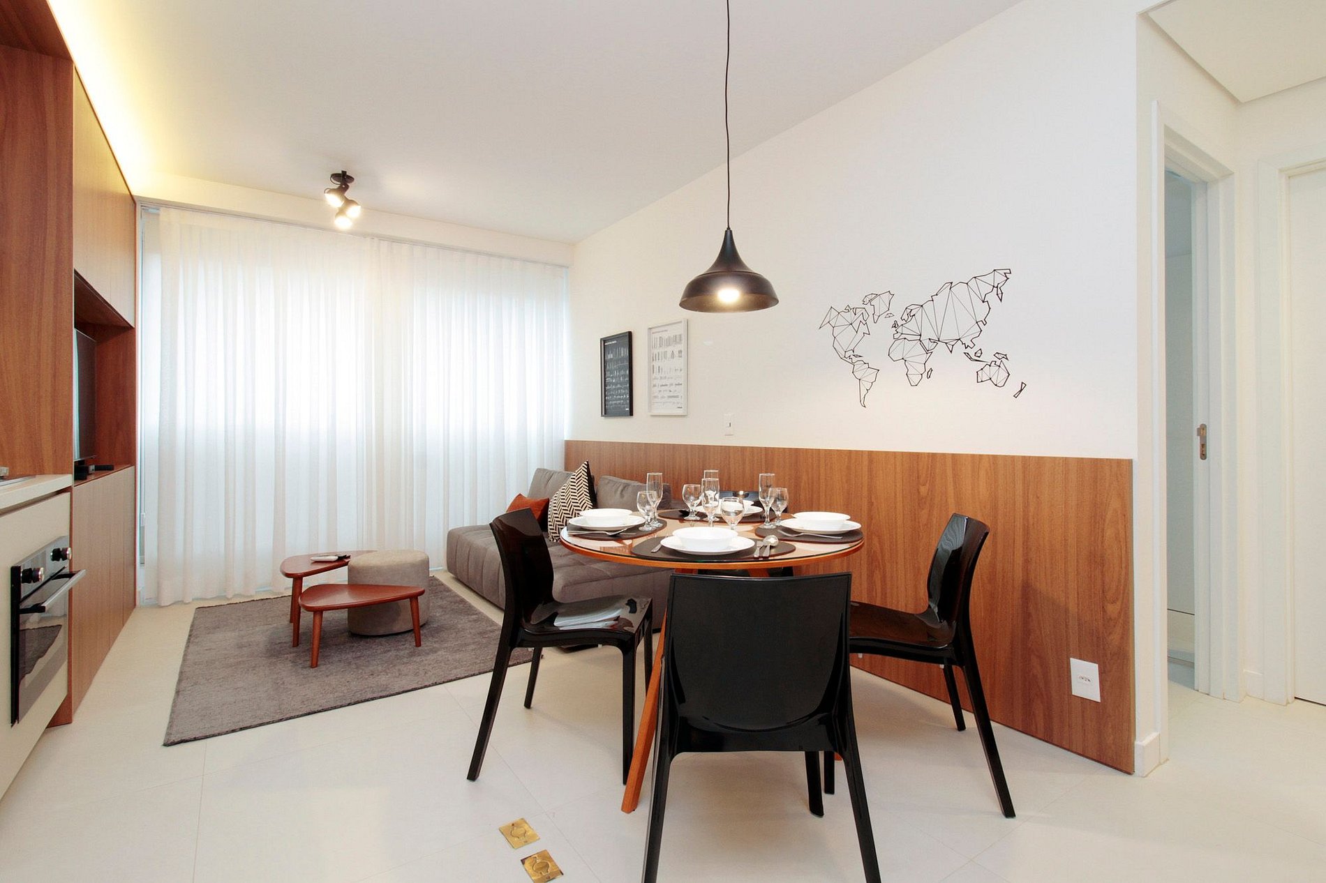 O que torna este apartamento especial são as escolhas na decoração e a disposição dos móveis.