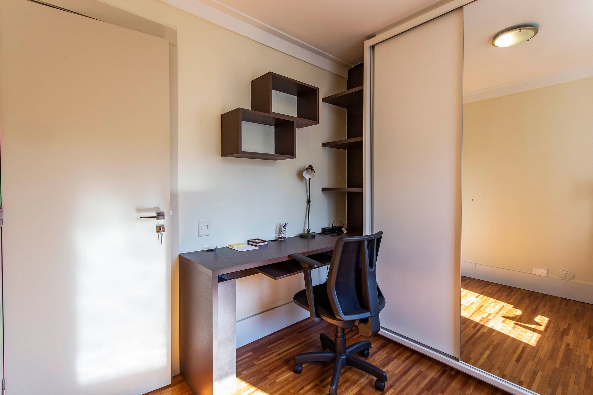 Apartamento recém decorado, com ambientes integrados e cozinha equipada, localizada na área nobre do Itaim Bibi! Possui uma suíte com ar condicionado e closet e um quarto armário, com um ótimo espaço para fazer home office e com a opção de colocar uma cama de solteiro.