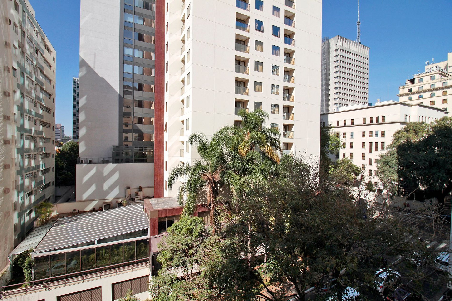 O quarto oferece blackout, TV e enxoval de qualidade. Banheiro com ducha Deca e aquecedor de toalhas.