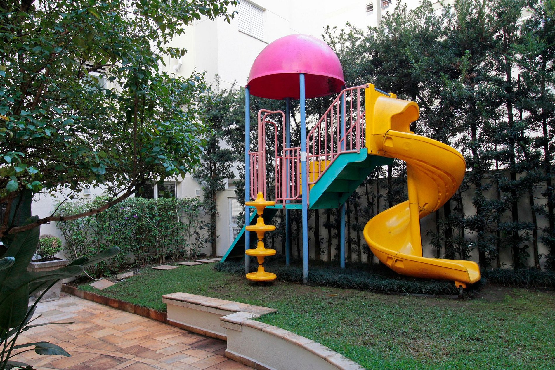 O prédio oferece piscina, academia, churrasqueira, jardim e brinquedoteca.