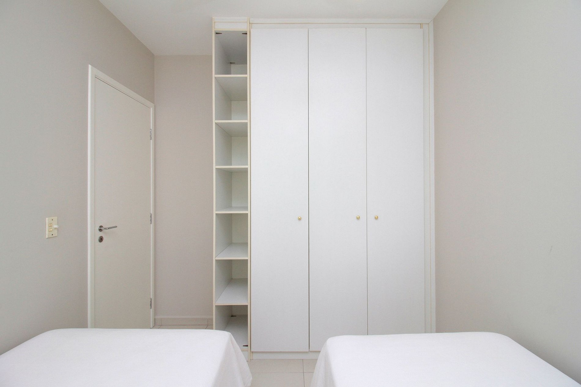 Conta com duas camas de casal, duas de solteiro, enxoval de qualidade e armários, garantindo conforto para famílias em viagem, mudança ou outras necessidades.