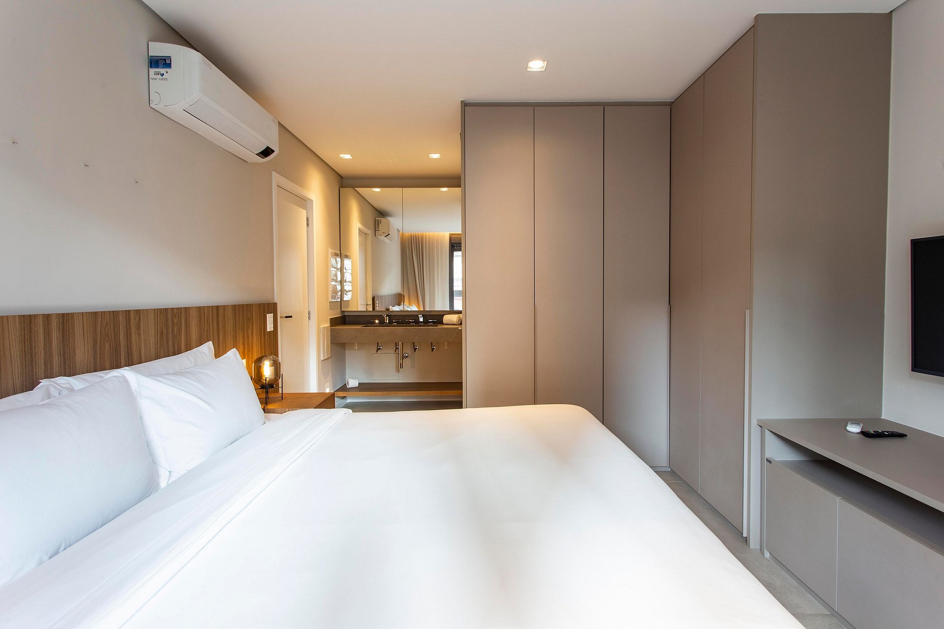 Apartamento com 2 suítes com ar condicionado, cozinha equipada, mesa de jantar, TV Smart, TV a cabo, roupas de cama e toalhas, janelas blackout e uma ducha maravilhosa! Os ambientes são integrados com a sala, tornando o espaço iluminado e agradável. Para o seu conforto, se é oferecido o serviço de limpeza básica diária e um café da manhã delicioso!