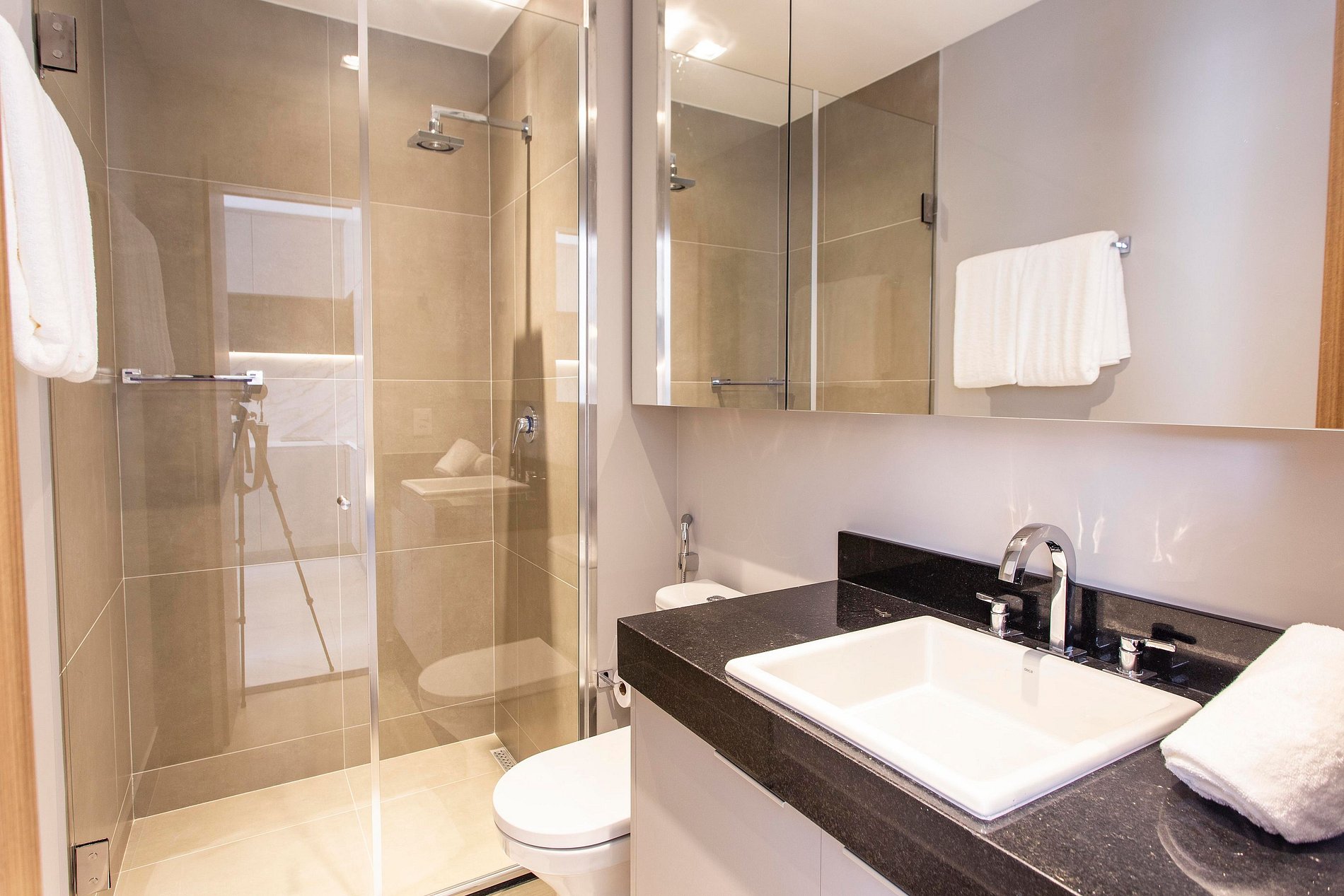 Apartamento de 1 suite, novinho, bem decorado, ar condicionado, TV Smart e canais a cabo, enxovais de excelente qualidade, blackout e uma ducha maravilhosa!