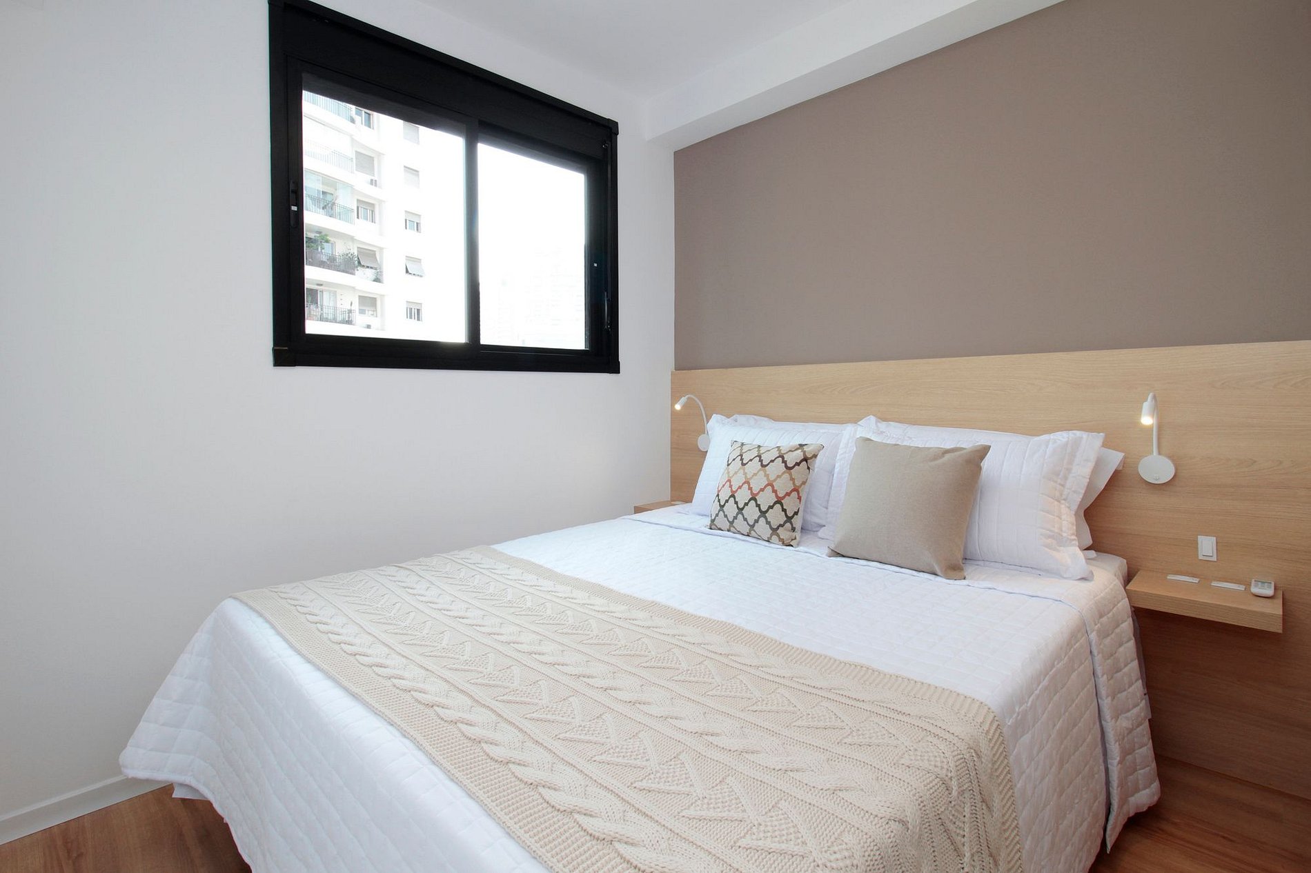 Na suíte: cama de casal, ar-condicionado, blackout, armário e enxoval de qualidade.