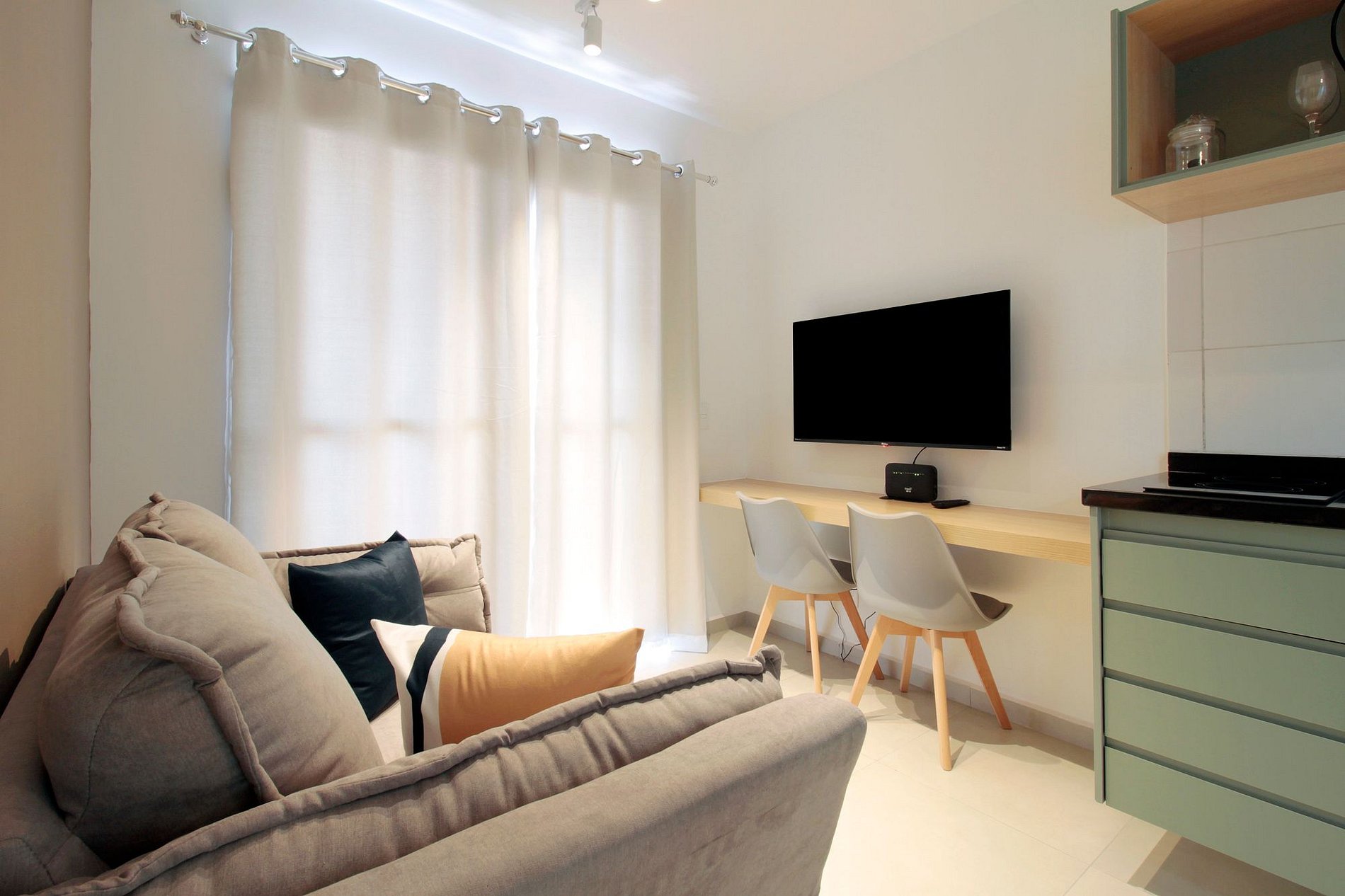 Ideal para 1 ou 2 hóspedes, seja a trabalho ou a lazer, bem planejado e com muita luz natural. Tudo o que você precisa para uma estadia confortável.