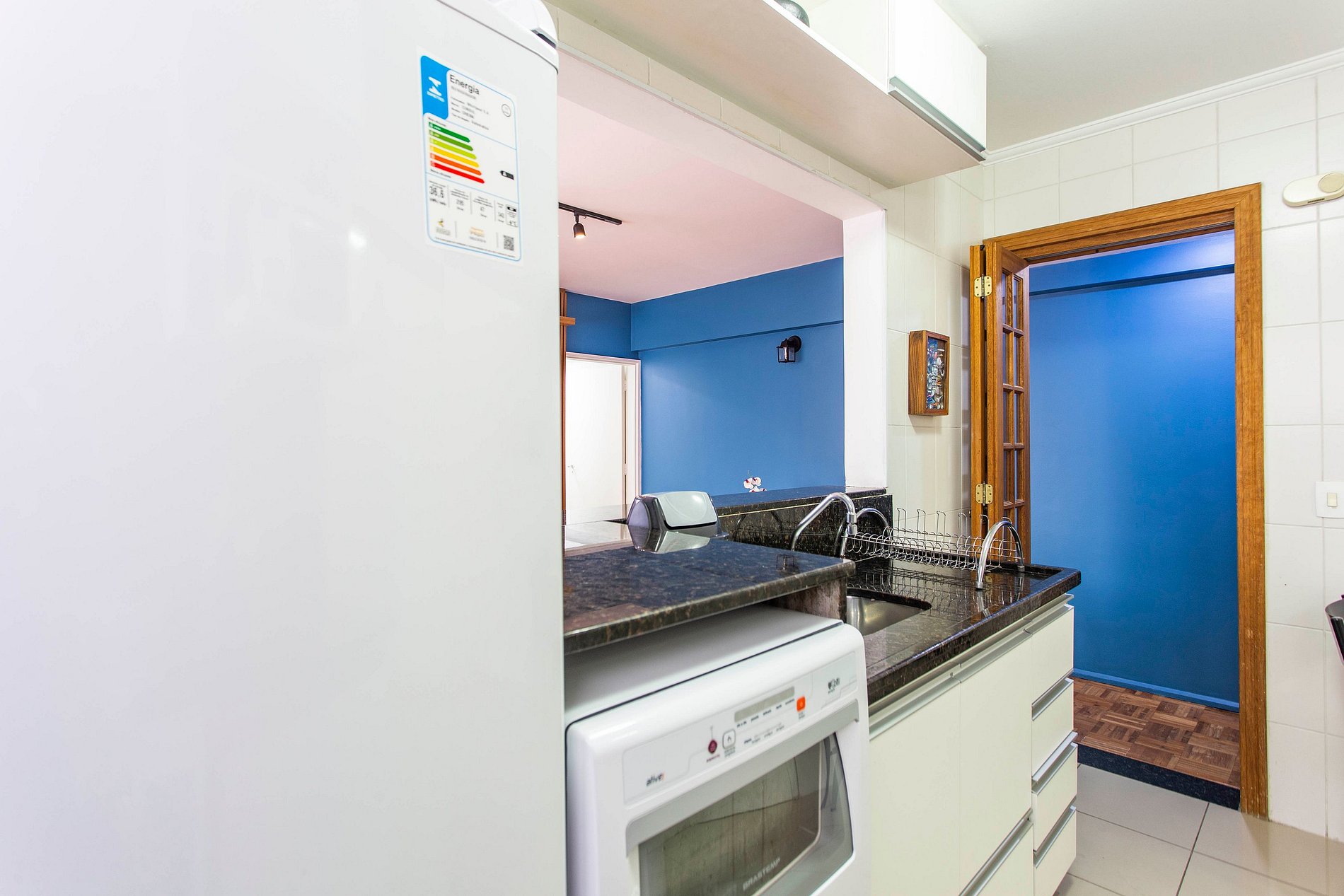 A cozinha é bem completa e, a área de serviço é arejada e possui máquina lava e seca.