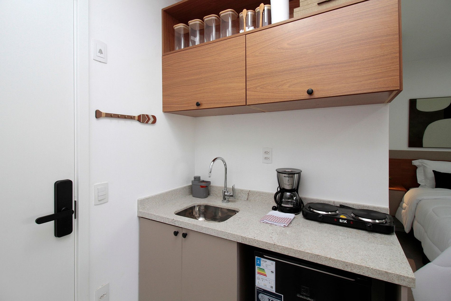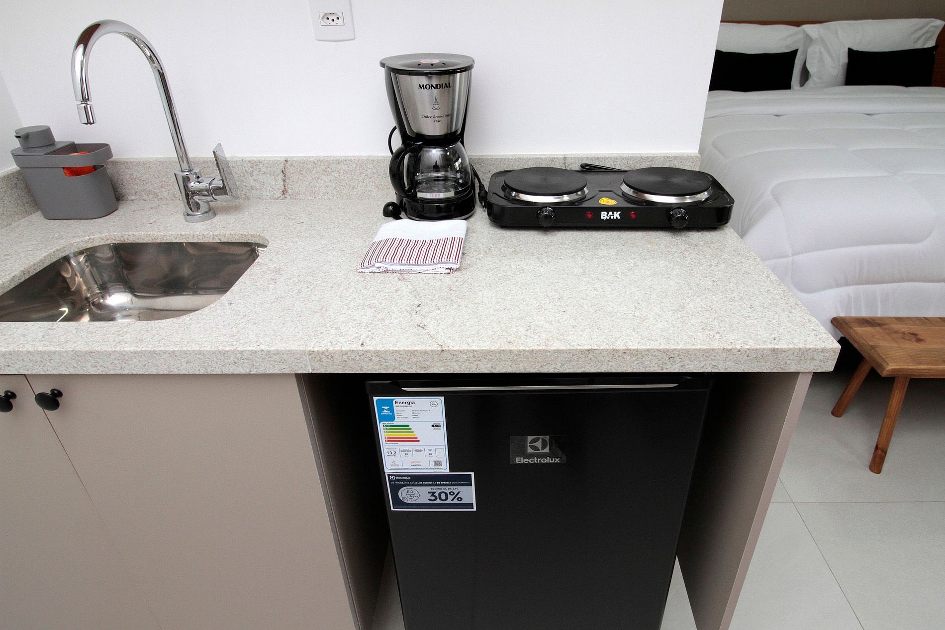 - Os materiais básicos, como: papel higiênico, água, café e açúcar são deixados para atende-los em um primeiro momento. É de responsabilidade do hóspede repor de acordo com sua necessidade;