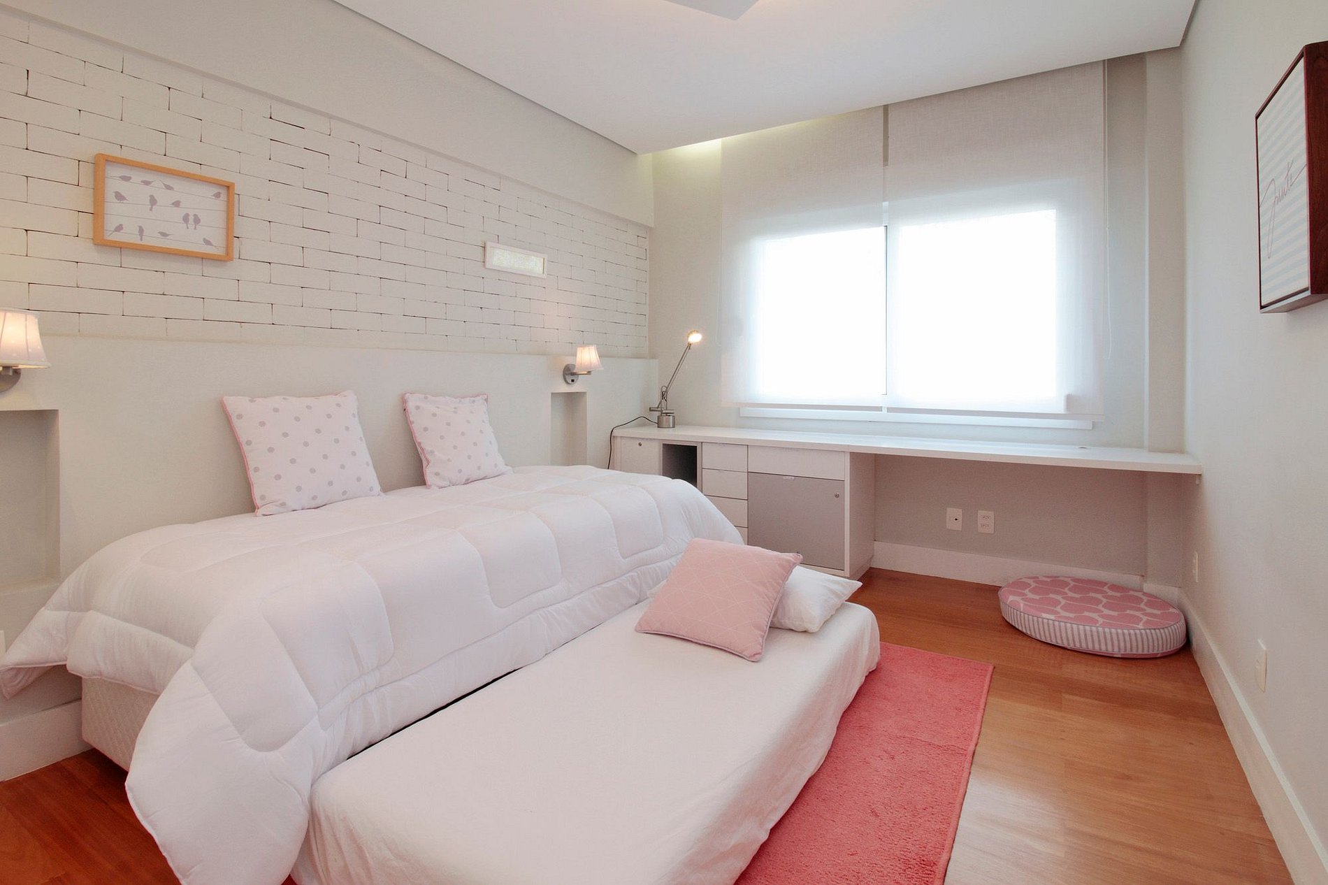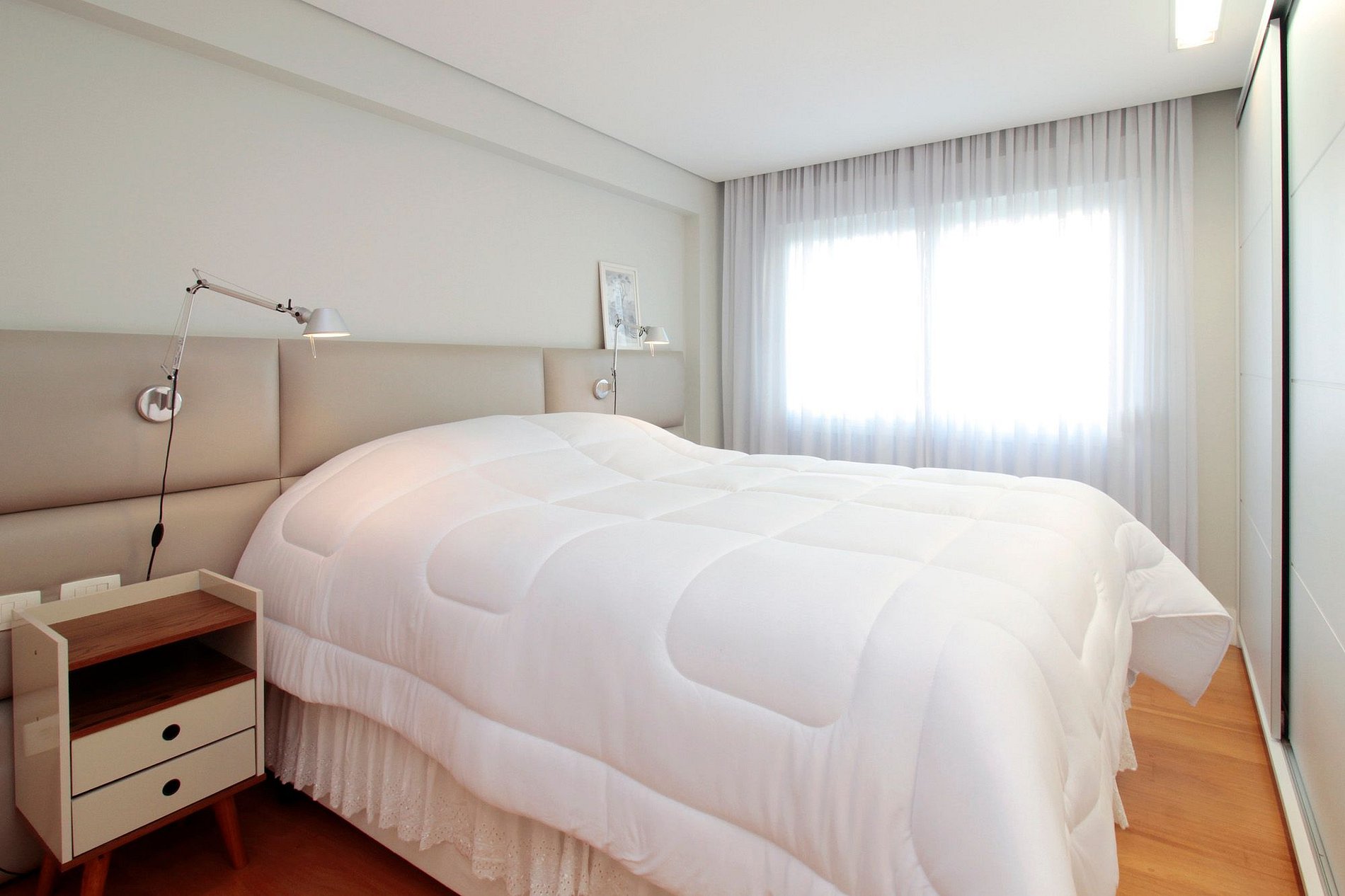 Na suite, cama king, blackout, ar condicionado, excelentes enxovais e ducha deliciosa. No segundo quarto, bicama e o mesmo conforto da suite.