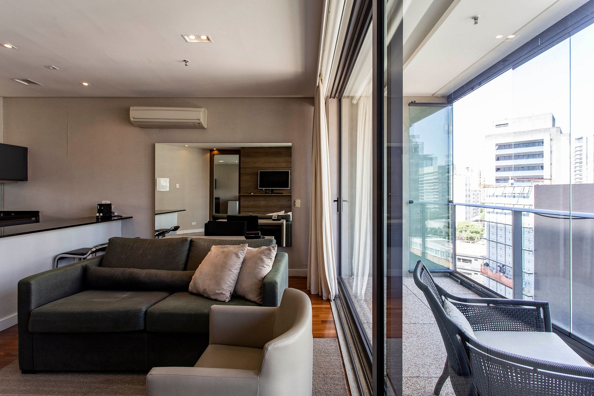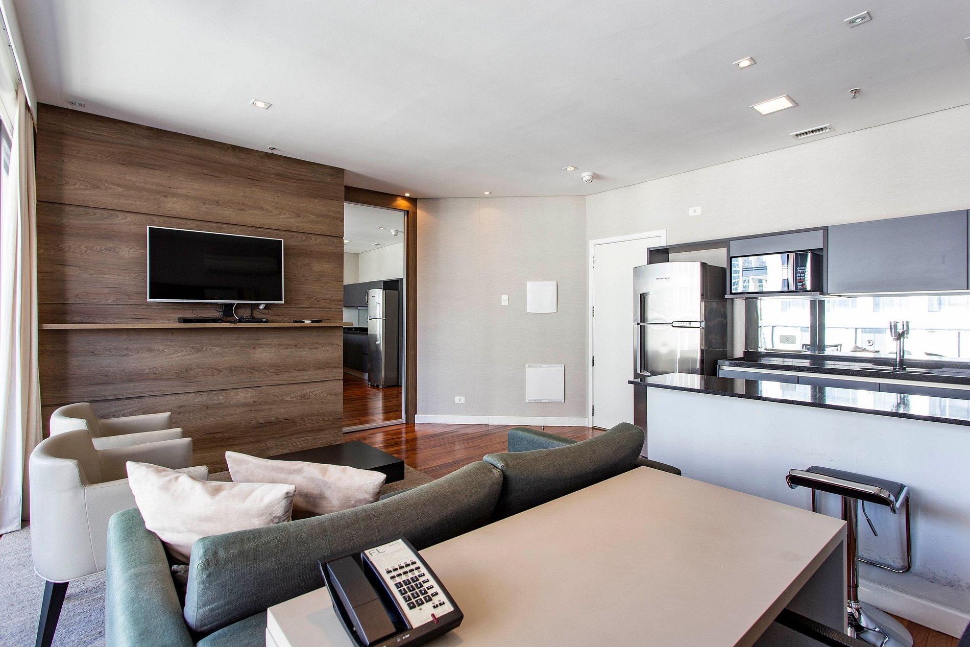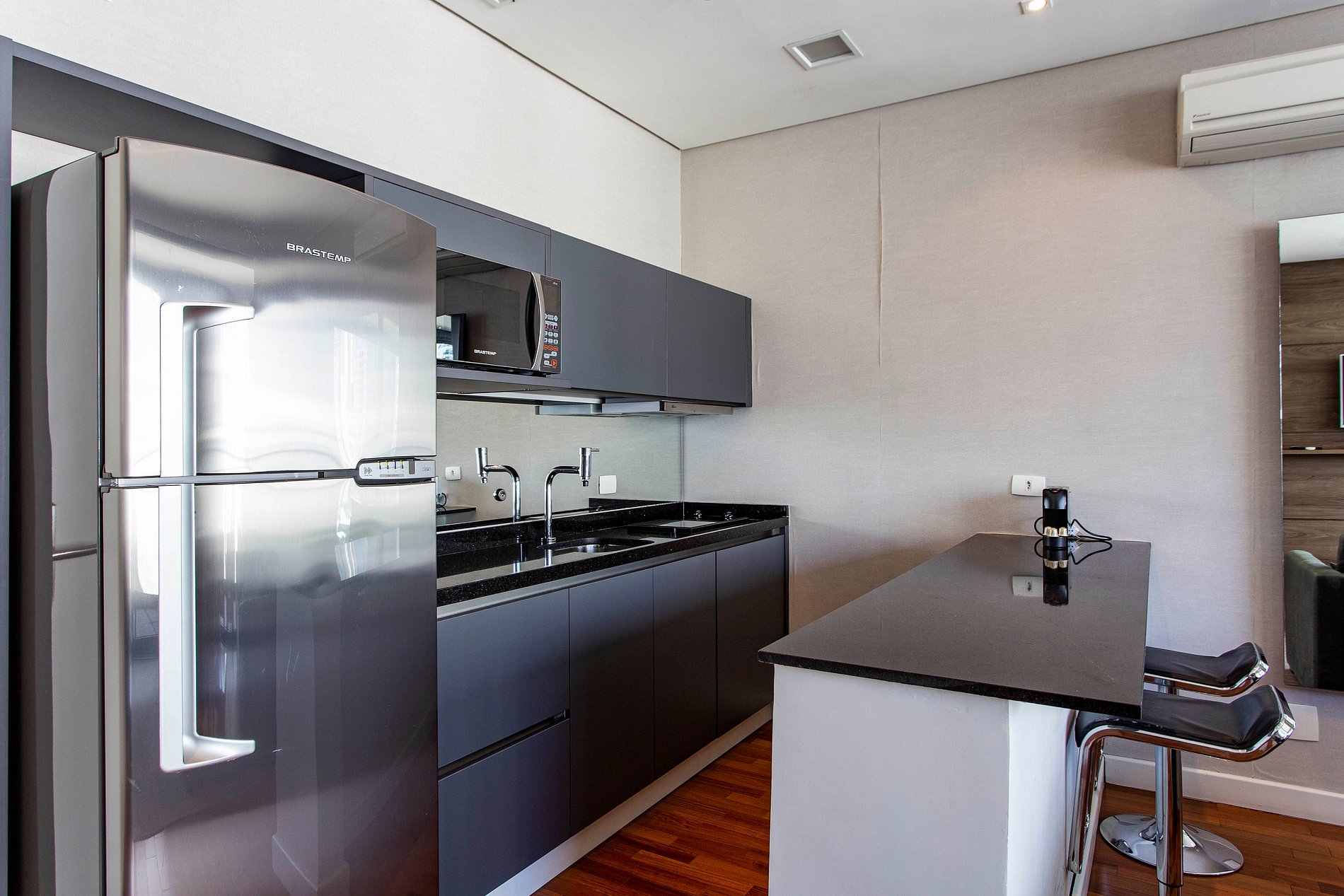 Ideal para quem vem a negócios e/ou a lazer. Perto e de fácil acesso ao novo centro financeiro de São Paulo (Faria Lima). Possui área de lazer completa, com piscina na cobertura, academia moderna, sala de pilates, sauna, lavanderia profissional com serviço automático (o pagamento é realizado na recepção), recepção 24h bilíngues, Wi-Fi, interfone, estacionamento com manobrista, segurança 24h, serviço de limpeza diária e equipe de manutenção. A construção envolve de forma harmoniosa uma linda praça arborizada onde encontra-se o delicioso restaurante Maremonti (Trattoria & Pizza). No térreo localiza-se o restaurante Elvira, onde são servidos café da manhã e almoço (delicioso, vale a pena experimentar!), além de um menu com o melhor da cozinha contemporânea. Além disso, é possível utilizar 1 vaga de garagem (o condomínio cobra R$ 50,00/por estadia. O valor deve ser pago no momento do check-in).
