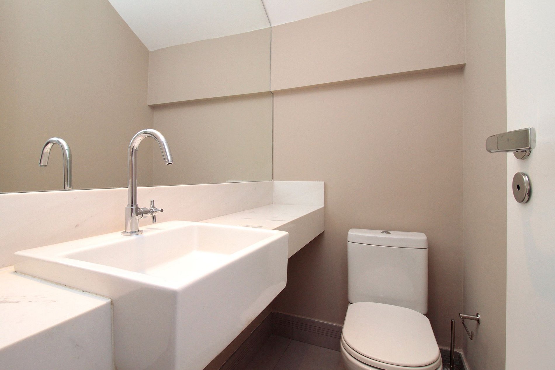 No andar inferior, as salas de estar, TV e jantar são espaçosas e integradas à cozinha, esta bem equipada, oferecendo conforto e praticidade, além da varanda fechada e aberta com bela vista para os Jardins.