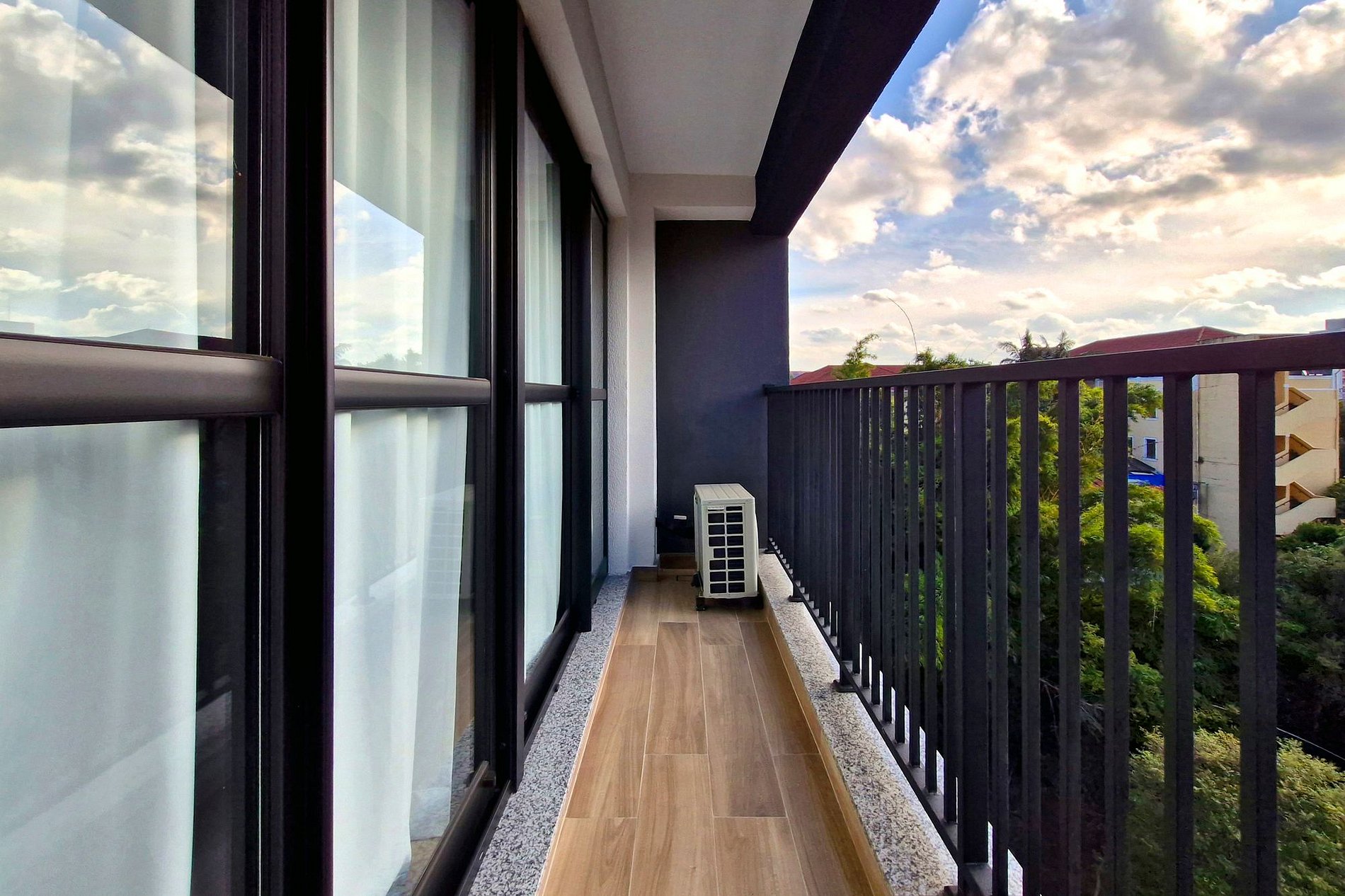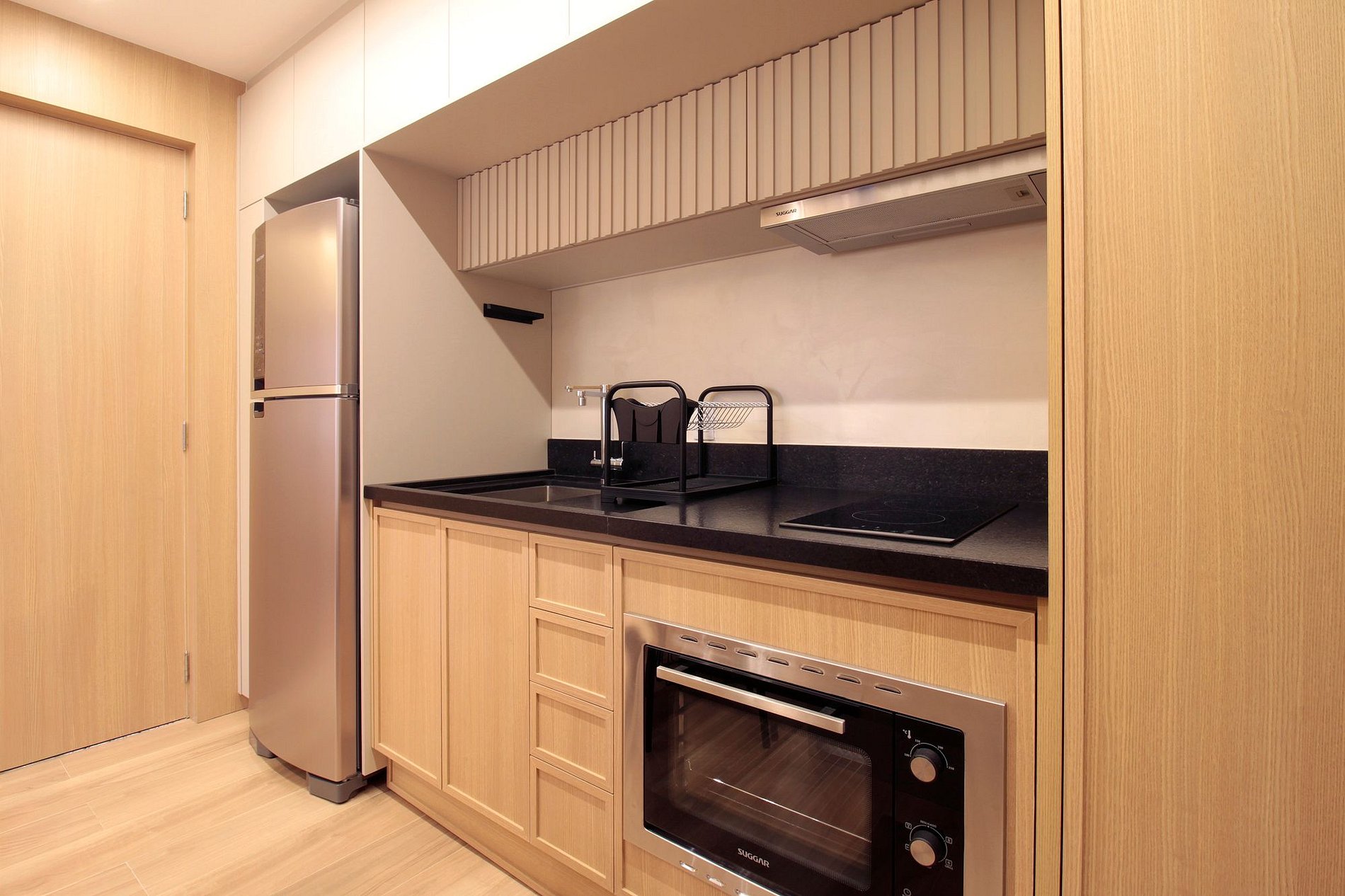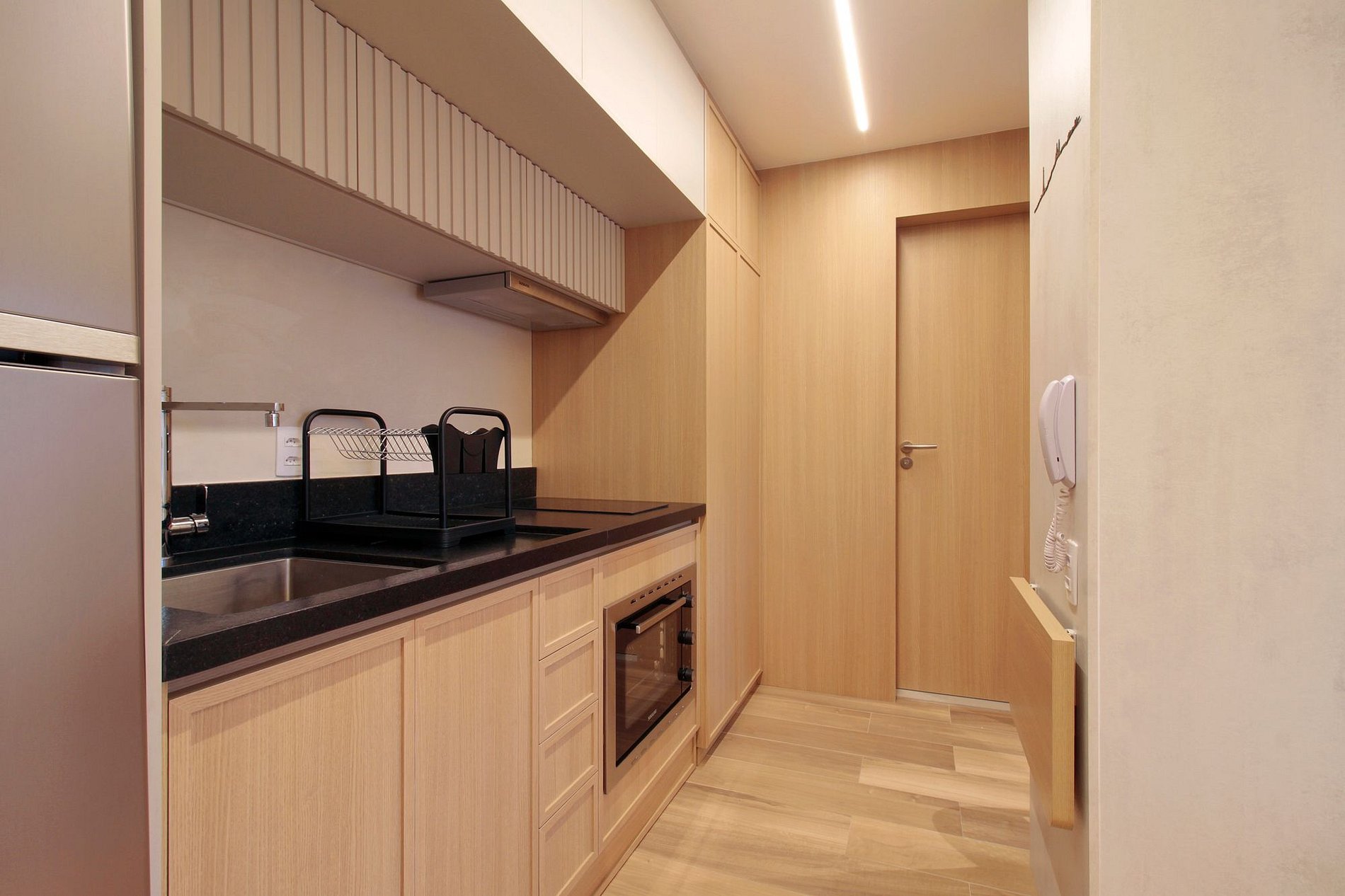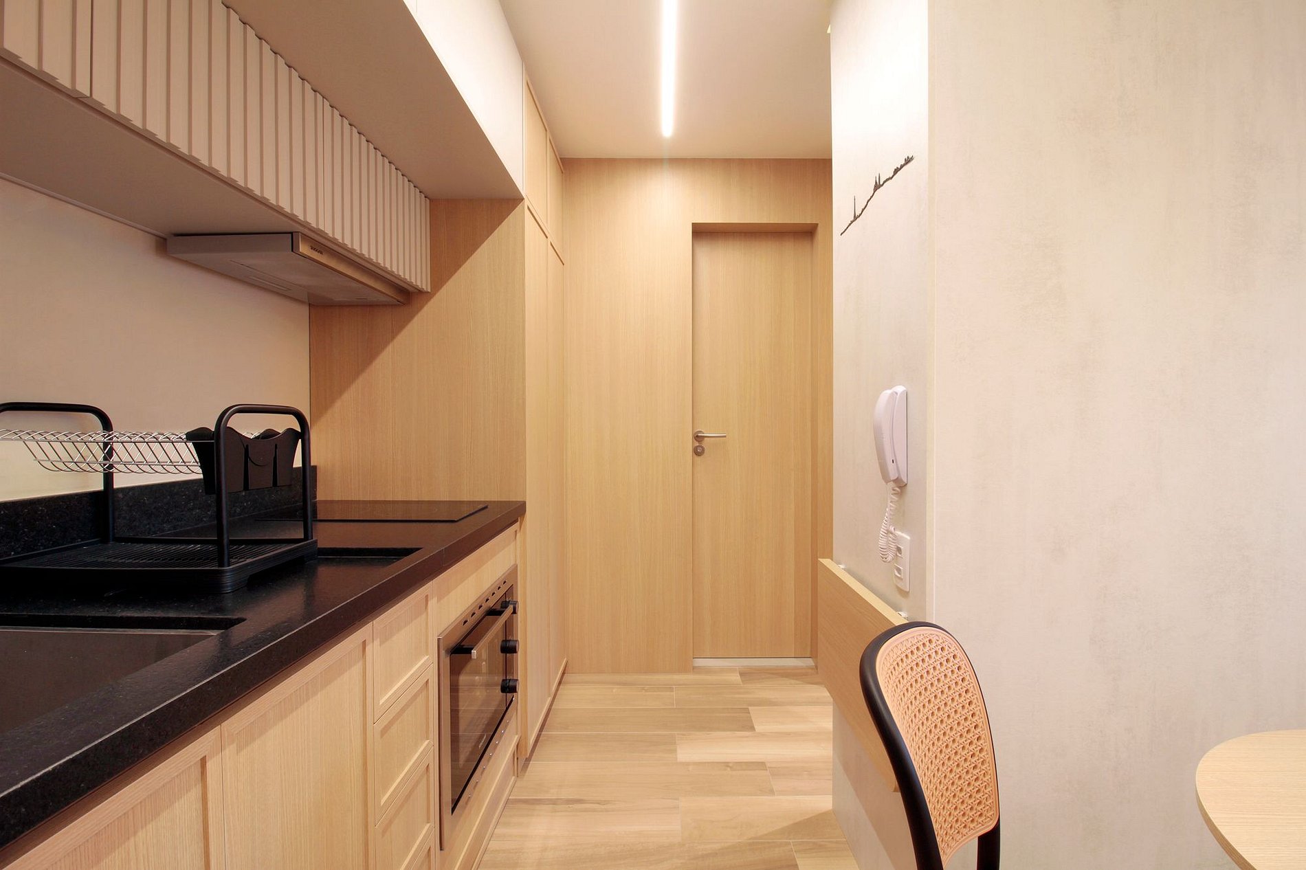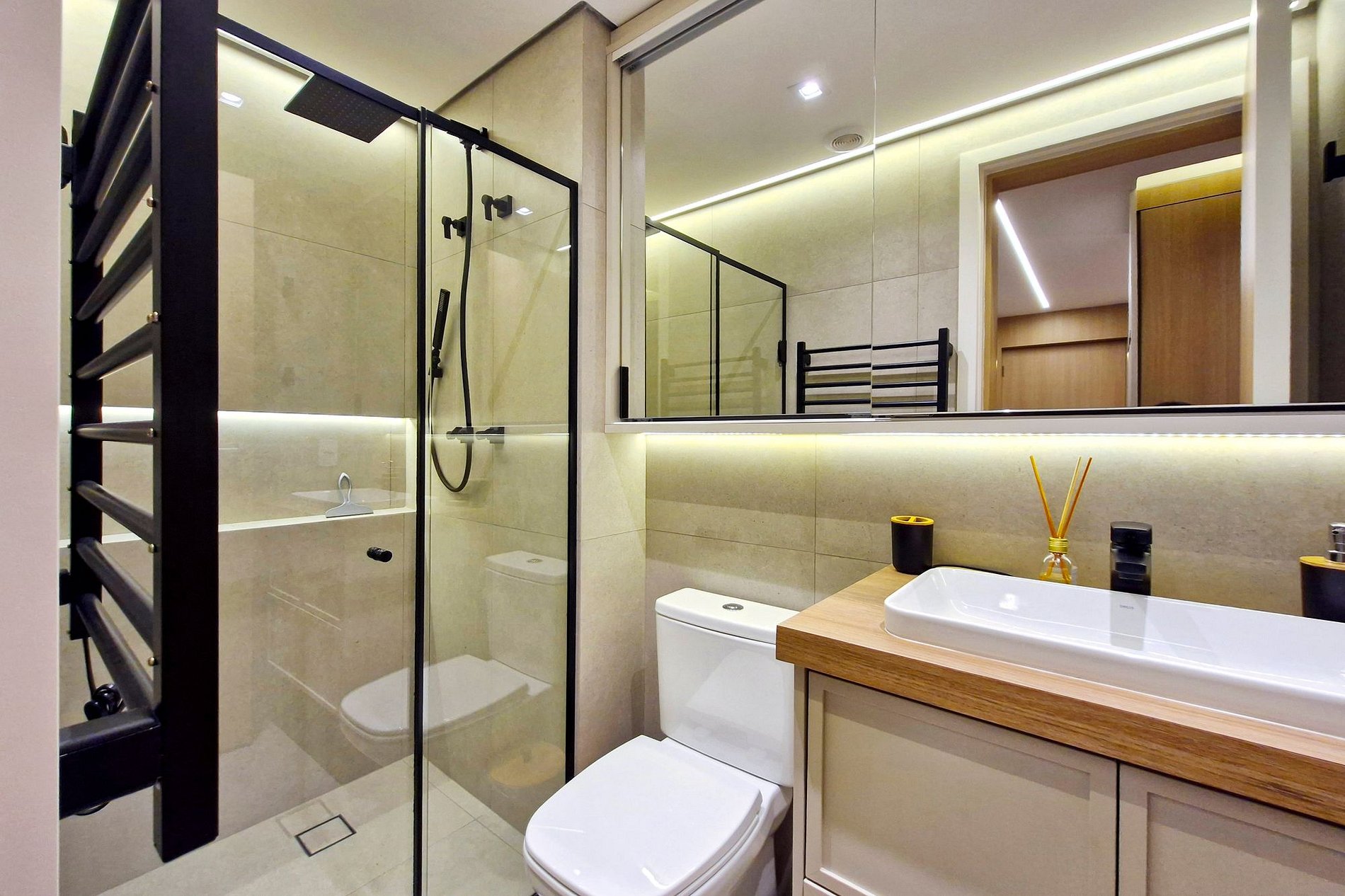 Os 35m2 são bem distribuídos entre a sala integrada com varandinha e cozinha bem completa. Nela, temos sofa confortável, cortina blackout, ar condicionado, TV Smart e excelente internet.