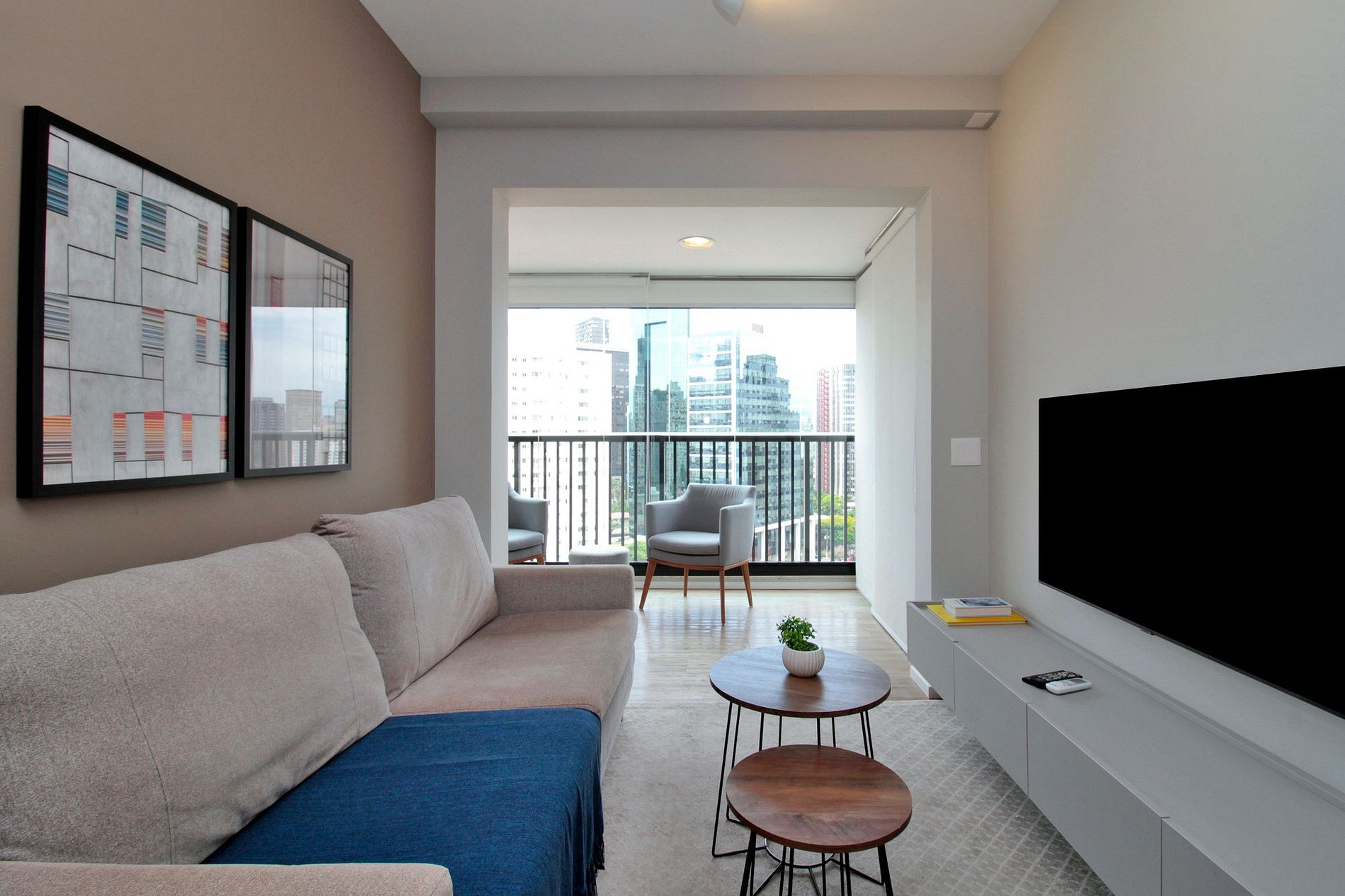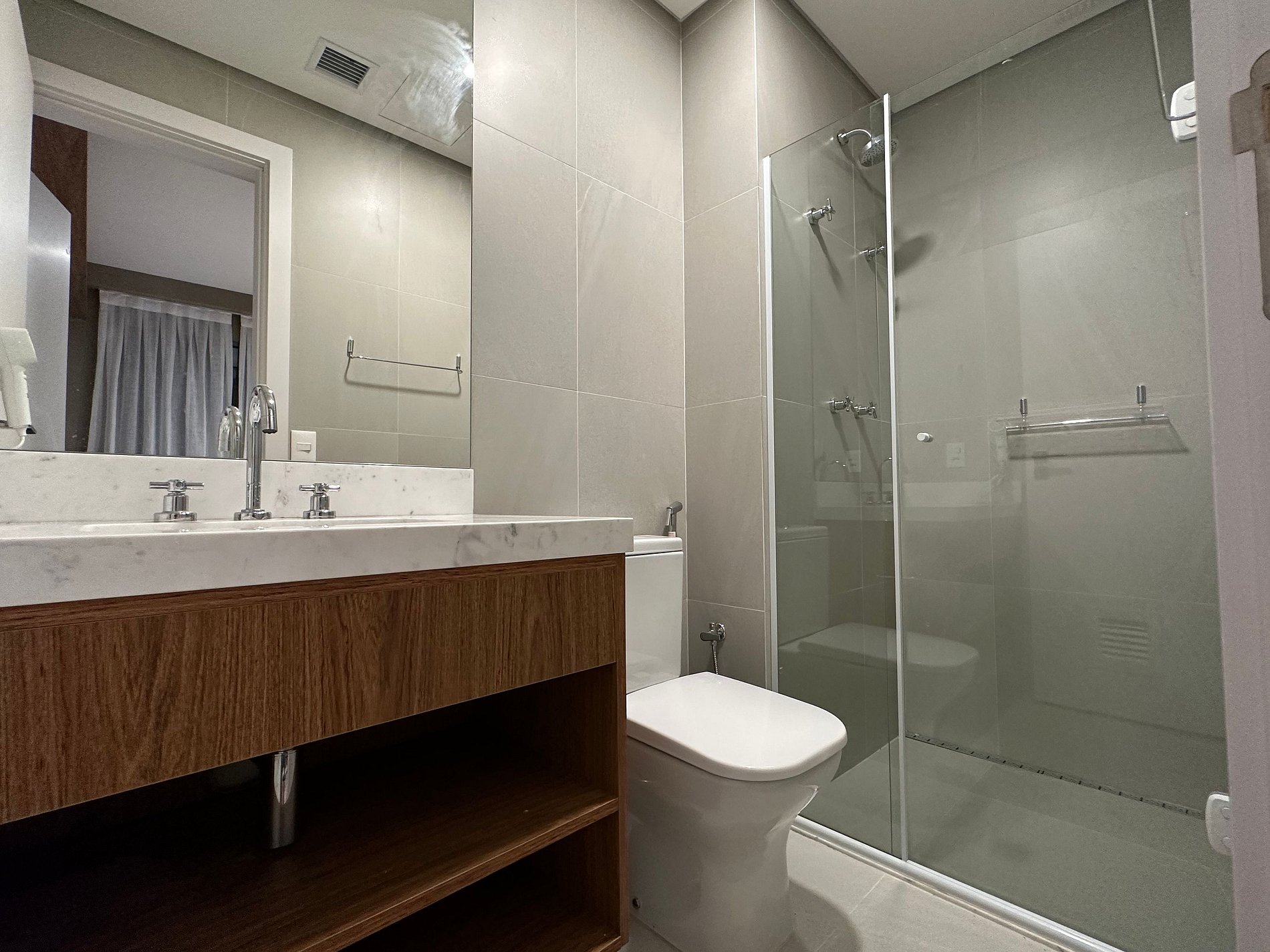 Possui suíte, varanda agradável, ar-condicionado, cortina blackout, Wi-Fi, TV Smart, lava e seca, enxoval exclusivo, cozinha equipada e mesa para home office.