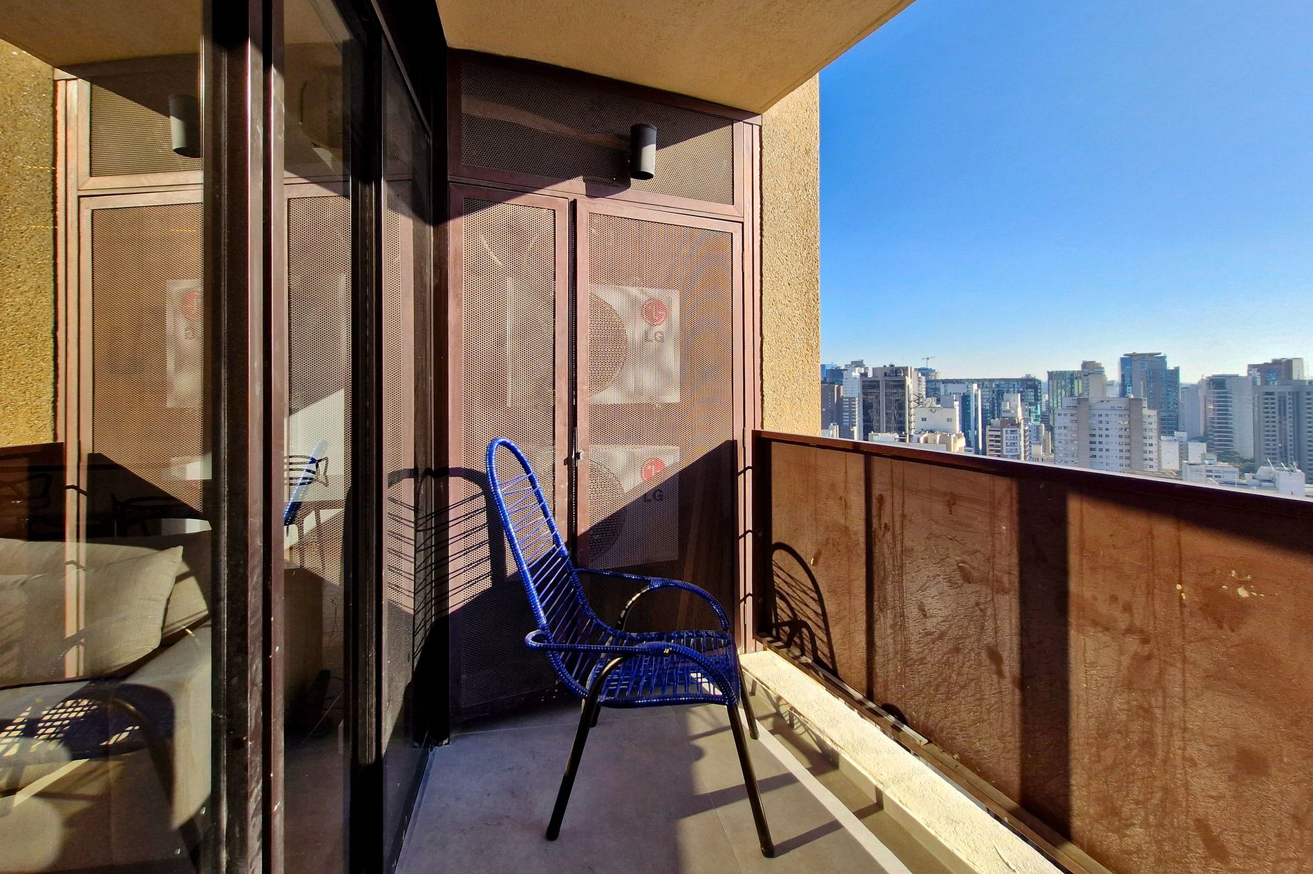A sala é arejada, iluminada, com TV Smart, internet, cozinha americana equipada e uma varanda inspiradora no 21º andar.