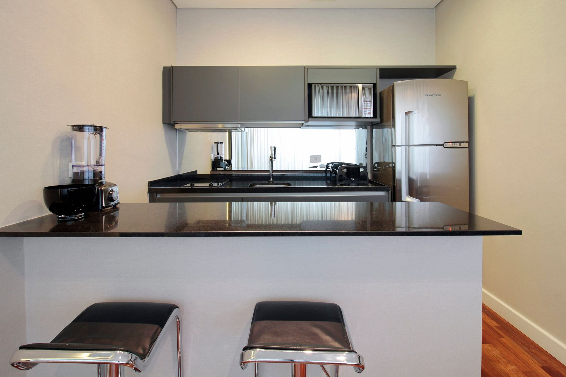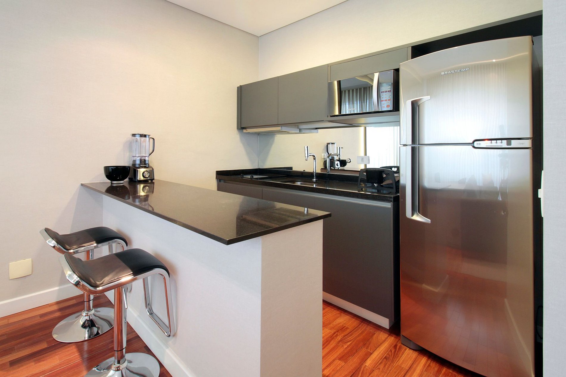 Estúdio sofisticado, com enxoval premium, recepção atenciosa e manutenção dedicada. A sensação é de estar em casa, com todo o conforto de um hotel.
