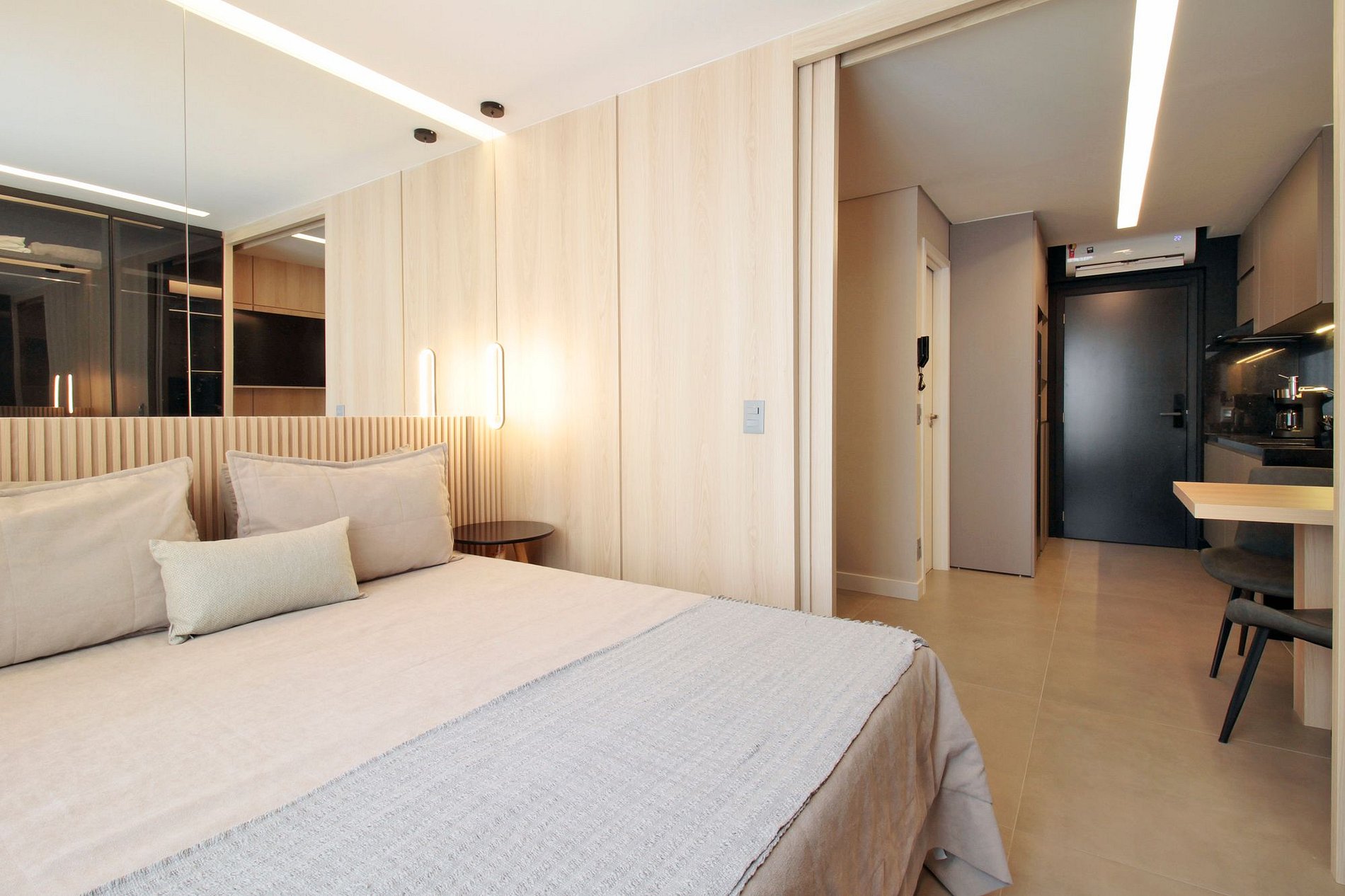 Apê recém entregue, lindo, bem decorado e totalmente mobiliado, para uma estadia confortável e funcional! No melhor do Itaim, próximo a excelentes restaurantes, escritórios e tudo acessível a pé! Quarto com enxoval completo, ar condicionado, armário amplo e linda vista. A cozinha é completa e integrada com a sala. Prédio com áreas de lazer completas. Sua melhor experiência em SP!